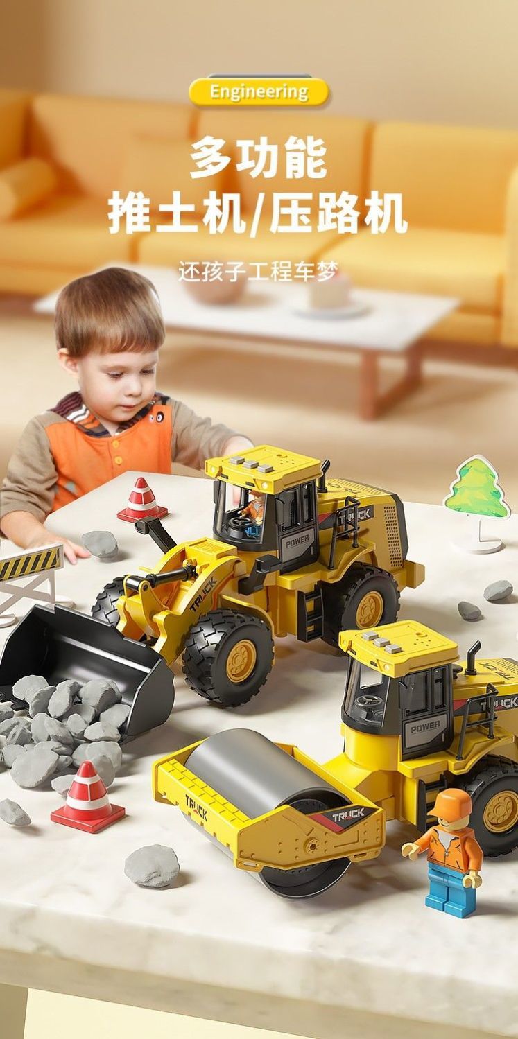 어린이 대형 합금 롤러 장난감 자동차 소년 소리와 빛 관성 굴착 불도저 엔지니어링 자동차 장난감 도매스토어 가기