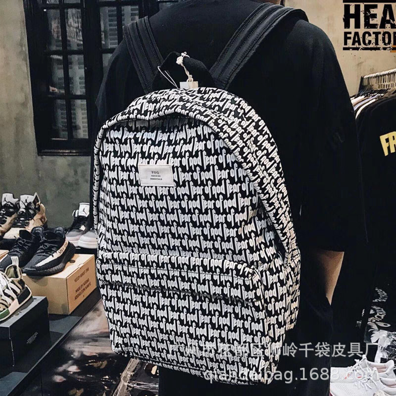 GOD FOG EssentIALS 듀플렉스 프린트 백팩 남성용 및 여성용 하이 스트리트 패션 브랜드 FOG 백팩스토어 가기