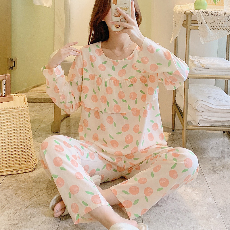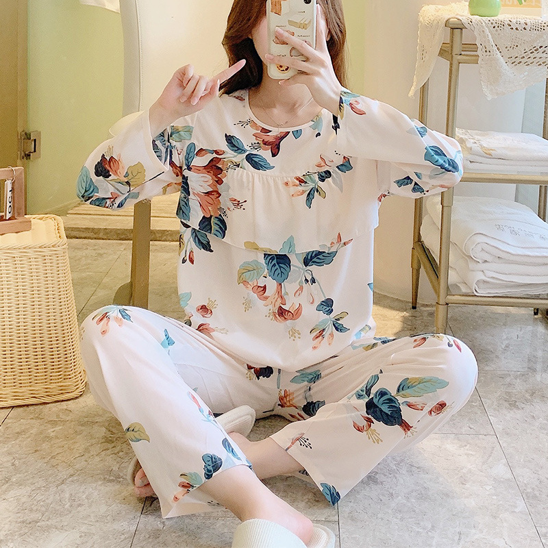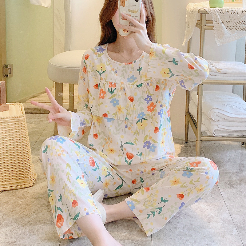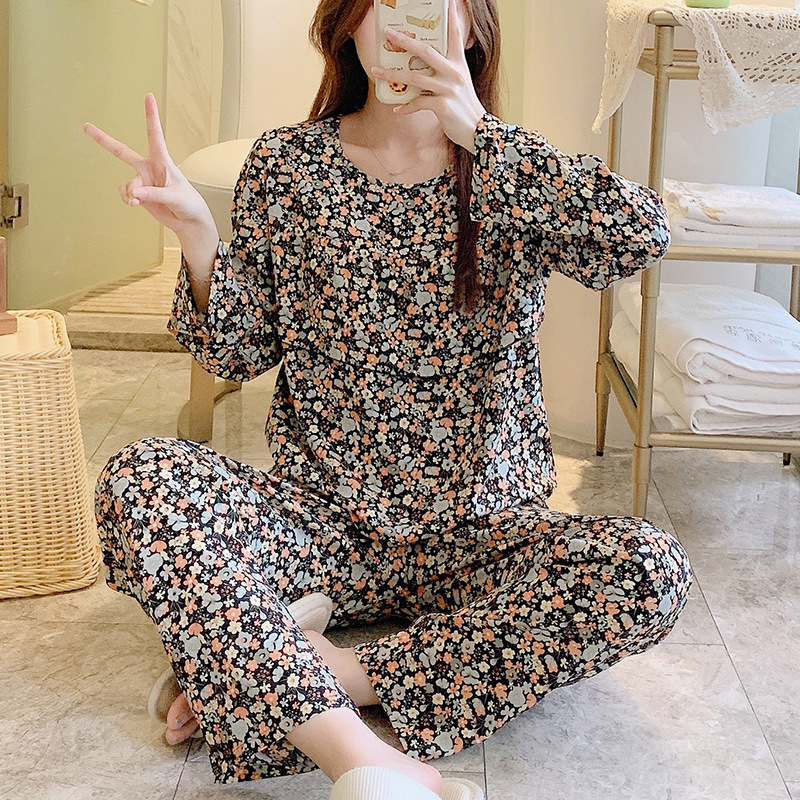 면 실크 잠옷 여자의 봄과 가을 긴팔 플러스 사이즈 세트 달콤한 면 실크 여름 얇은 인조 면 겉옷을 입고 가정 의류스토어 가기