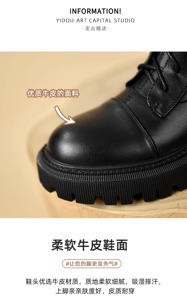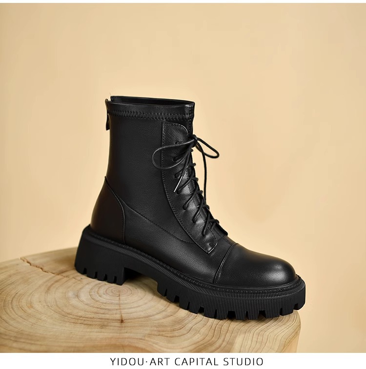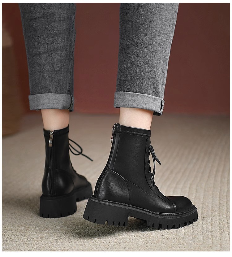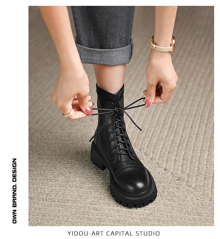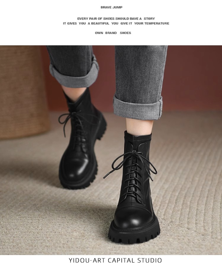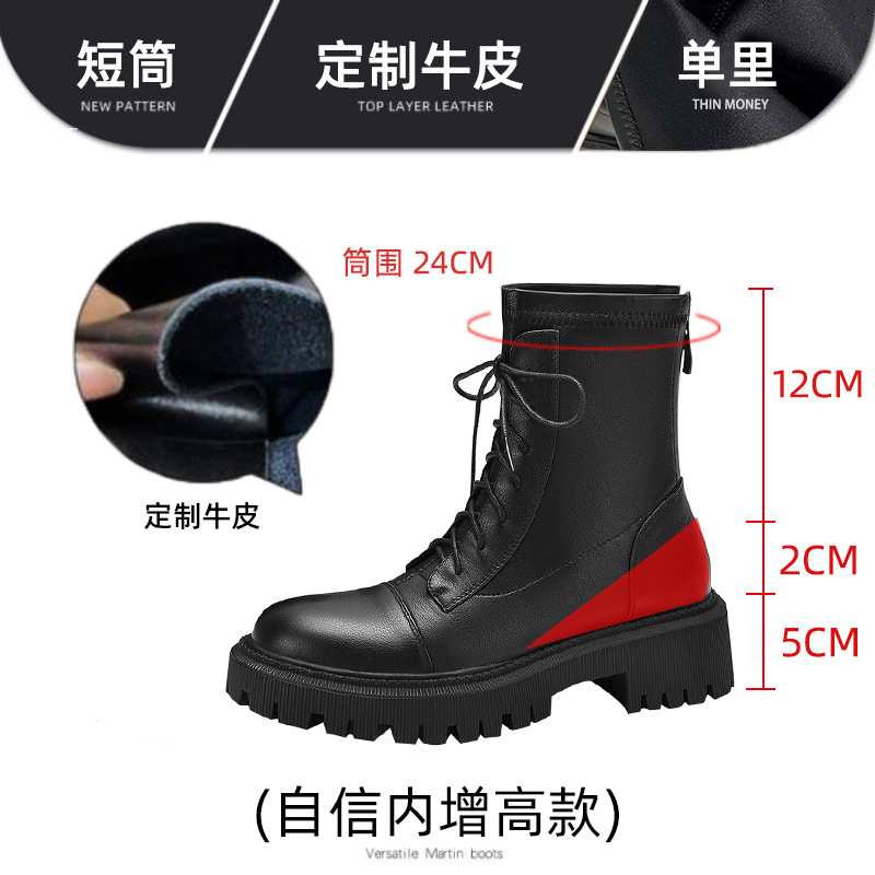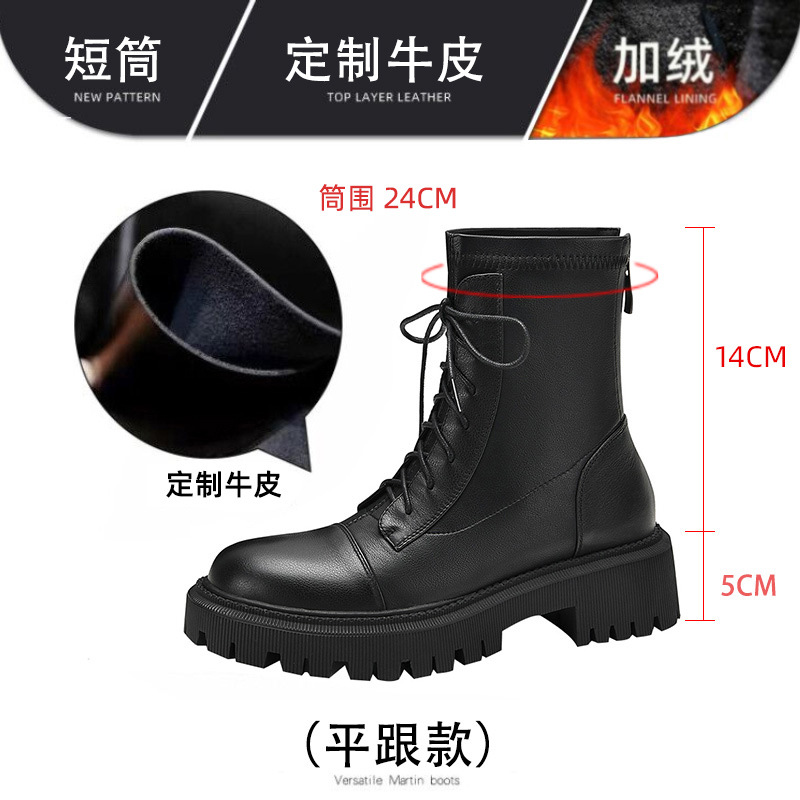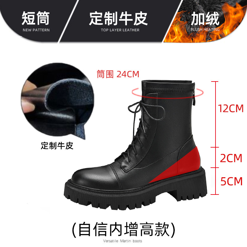 Fuji Shoefang 마틴 부츠 여성 2025 새로운 가을 플러스 벨벳 영국 두꺼운 밑창 정품 가죽 내부 고조 및 슬리밍 짧은 부츠스토어 가기