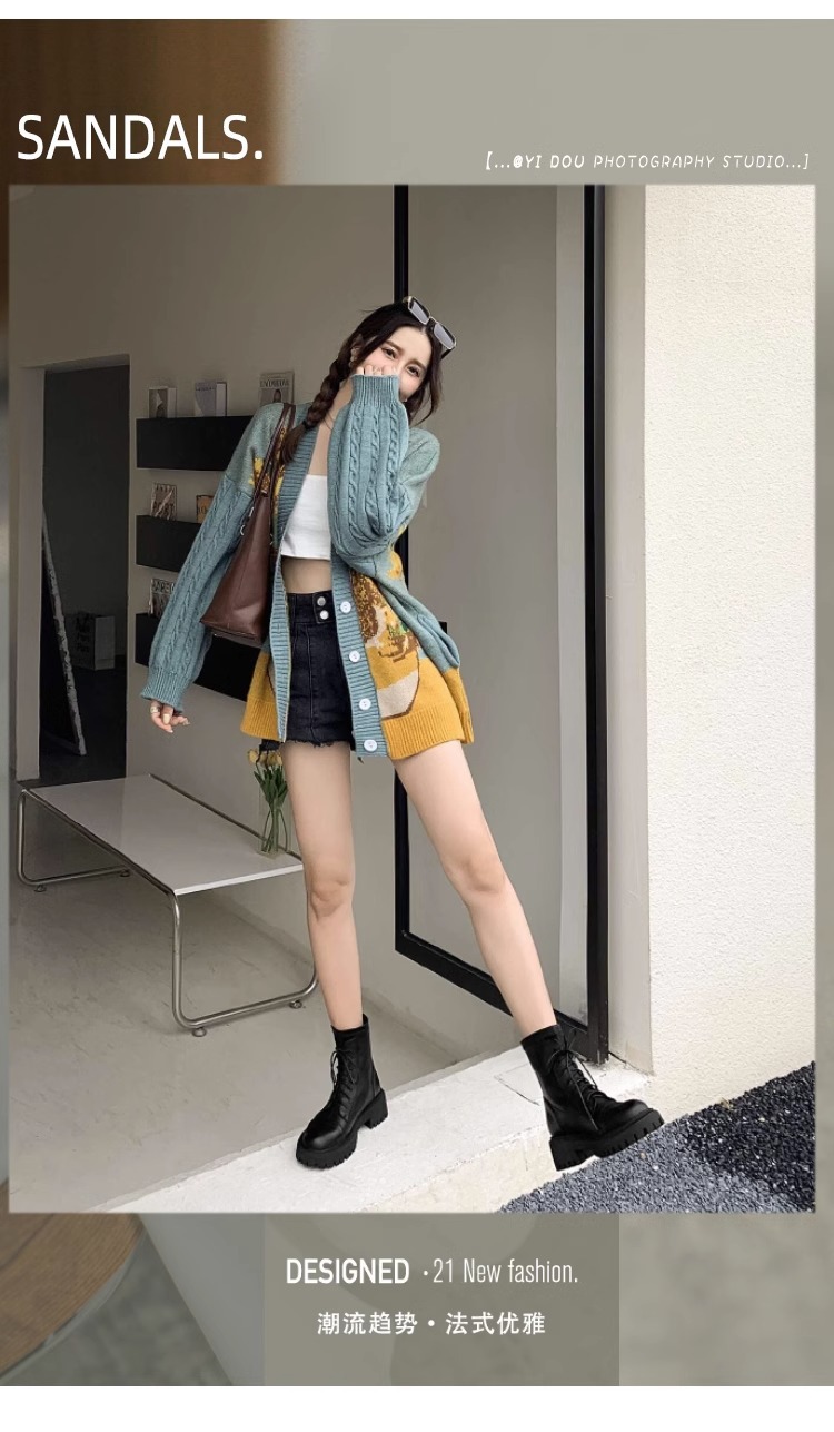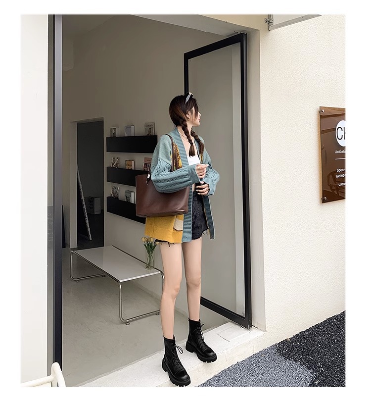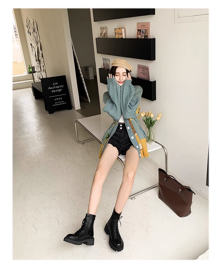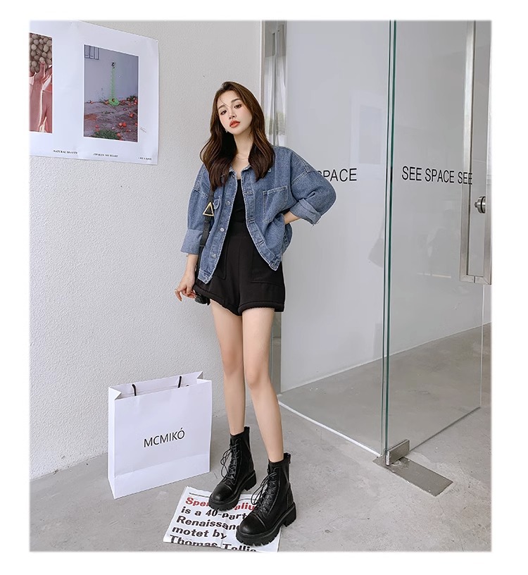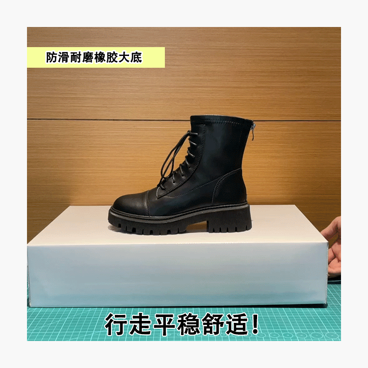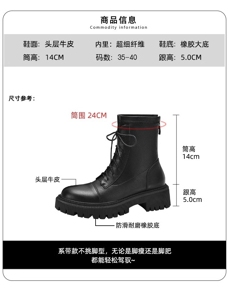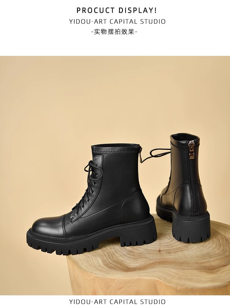 Fuji Shoefang 마틴 부츠 여성 2025 새로운 가을 플러스 벨벳 영국 두꺼운 밑창 정품 가죽 내부 고조 및 슬리밍 짧은 부츠스토어 가기