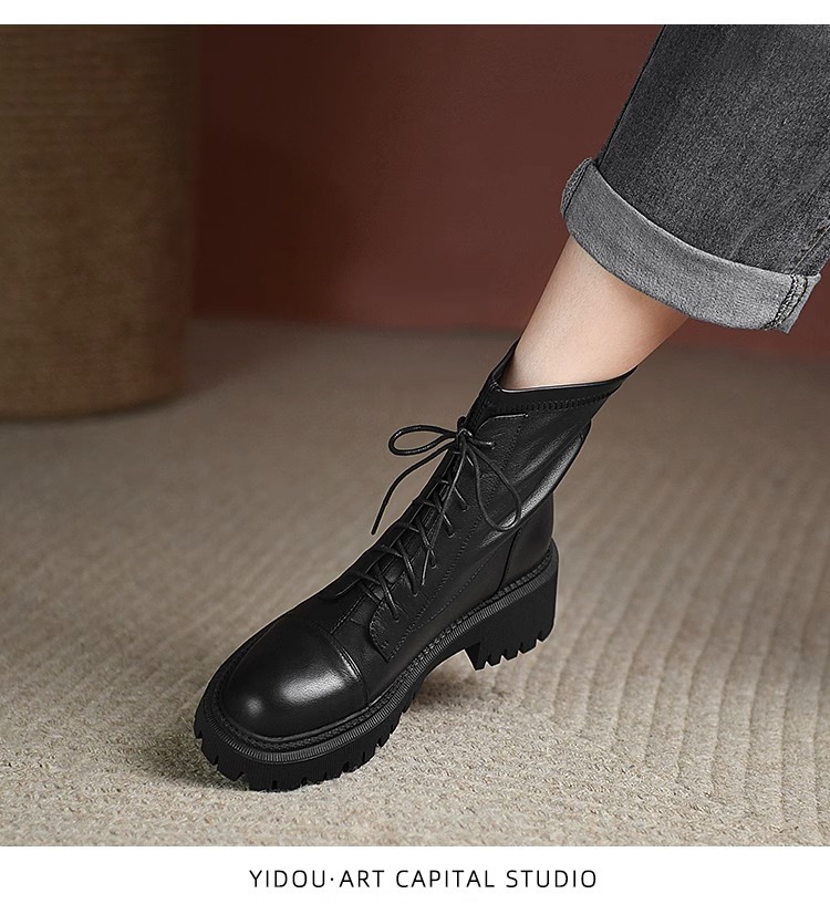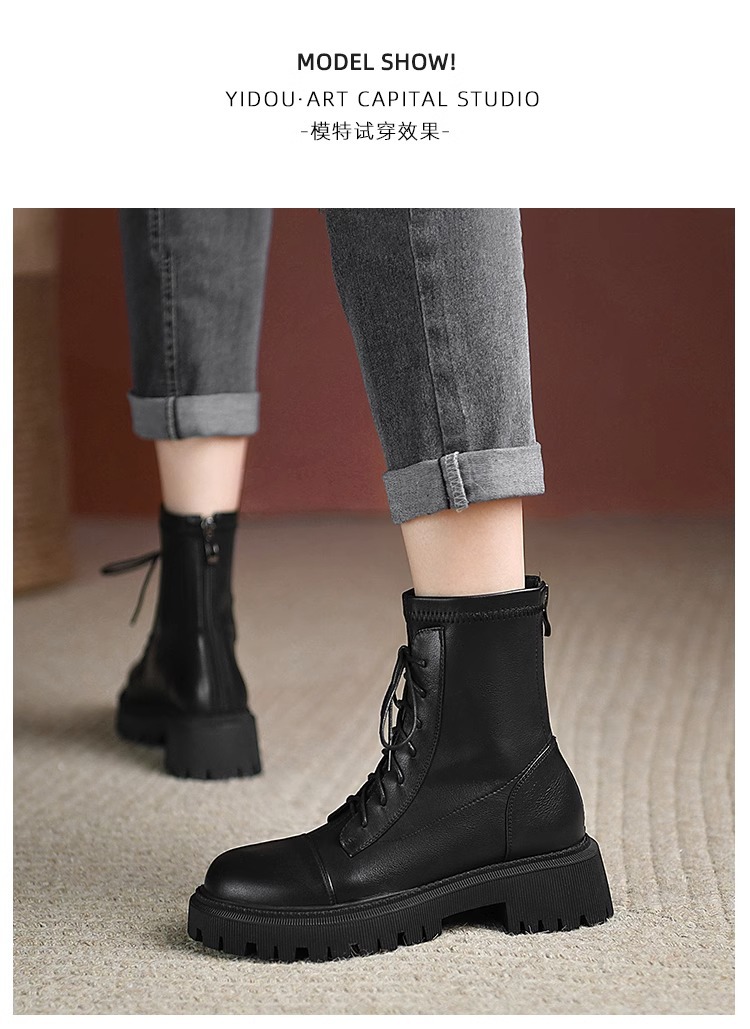 Fuji Shoefang 마틴 부츠 여성 2025 새로운 가을 플러스 벨벳 영국 두꺼운 밑창 정품 가죽 내부 고조 및 슬리밍 짧은 부츠