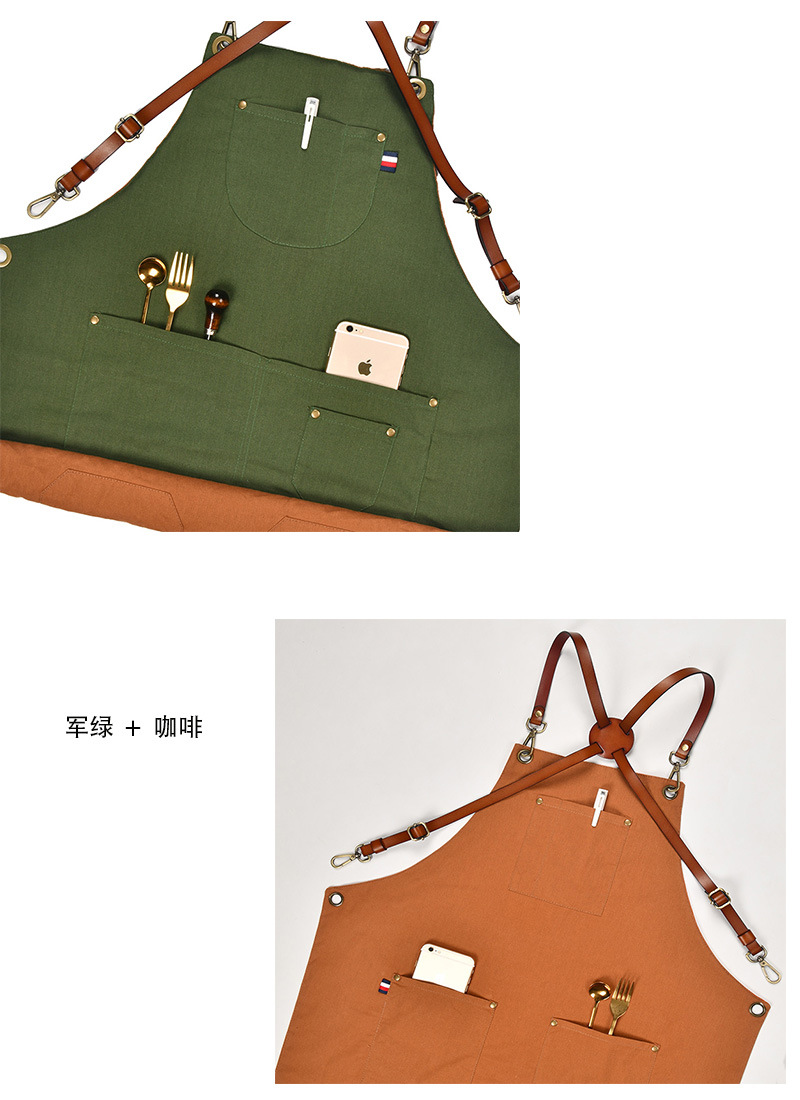 바리 스타 코튼 캔버스 방수 및 내유성 취사 앞치마 로고 인쇄 밀크 티 샵 바텐더 특수 작업복스토어 가기