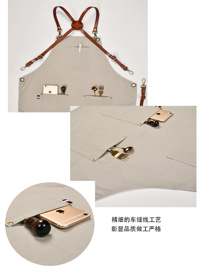 바리 스타 코튼 캔버스 방수 및 내유성 취사 앞치마 로고 인쇄 밀크 티 샵 바텐더 특수 작업복