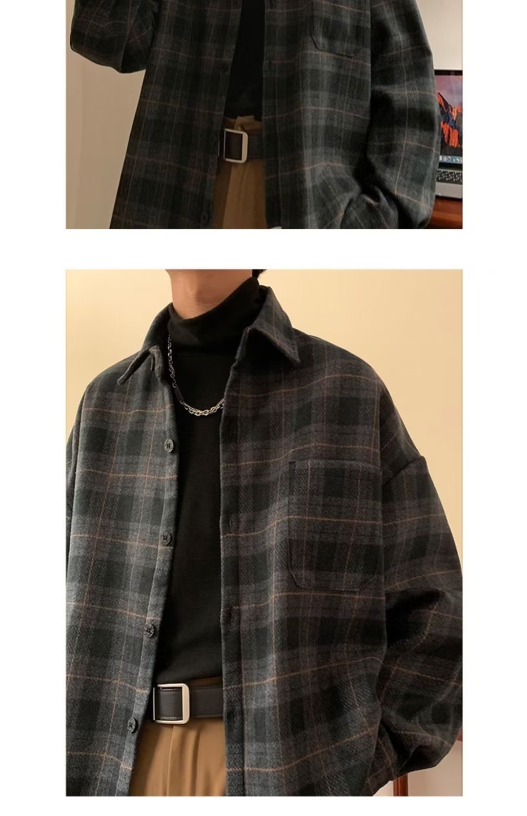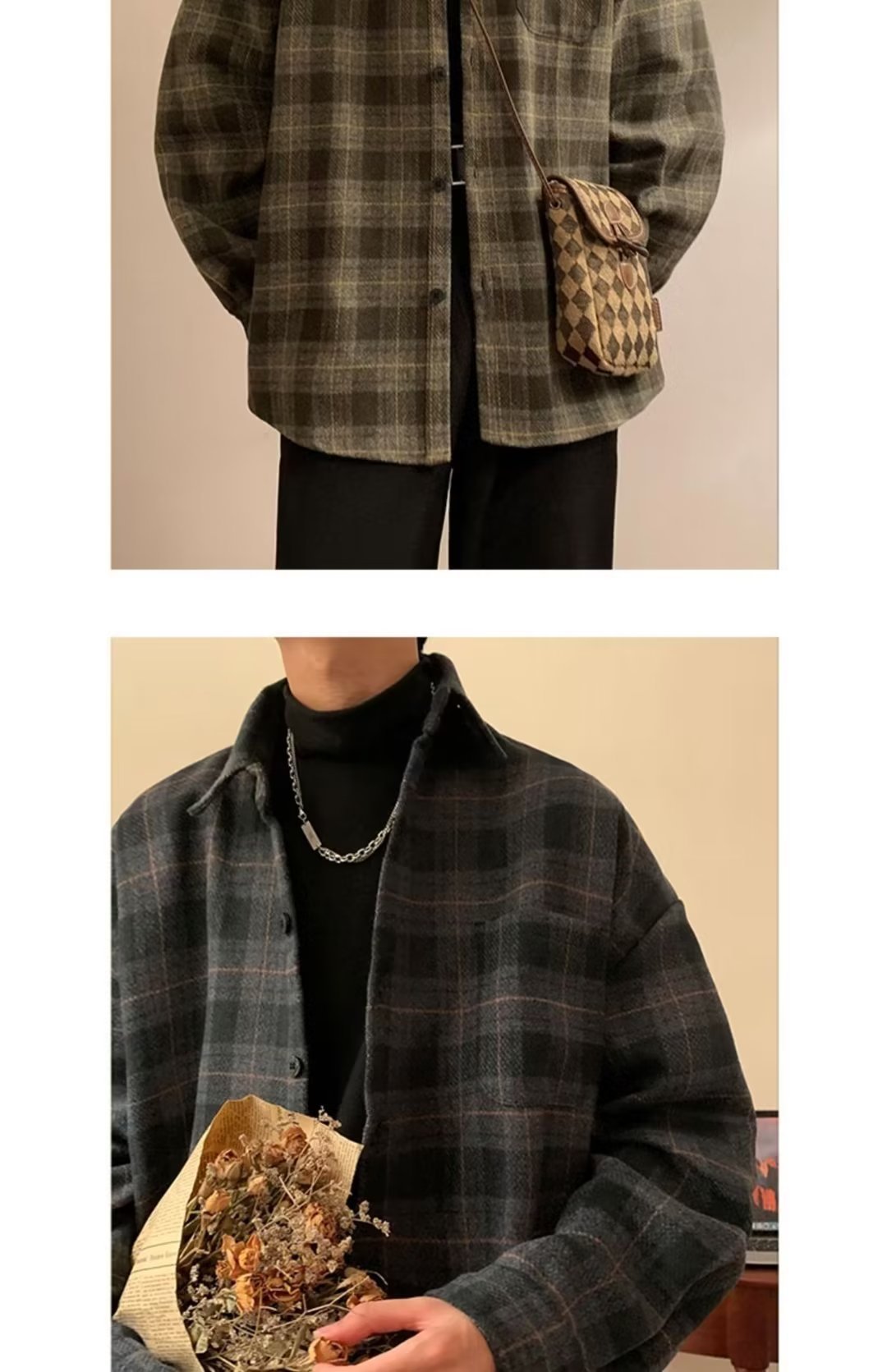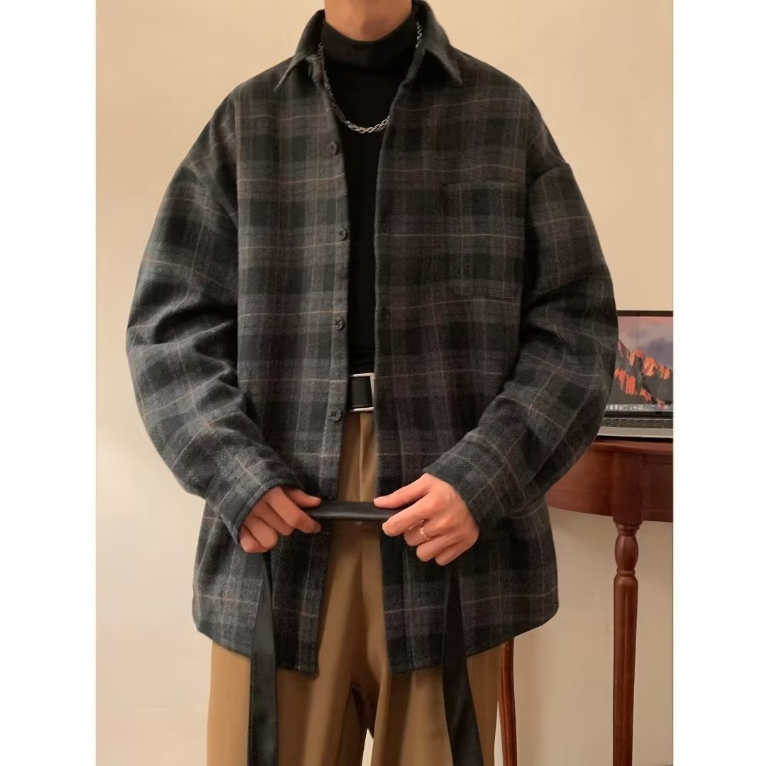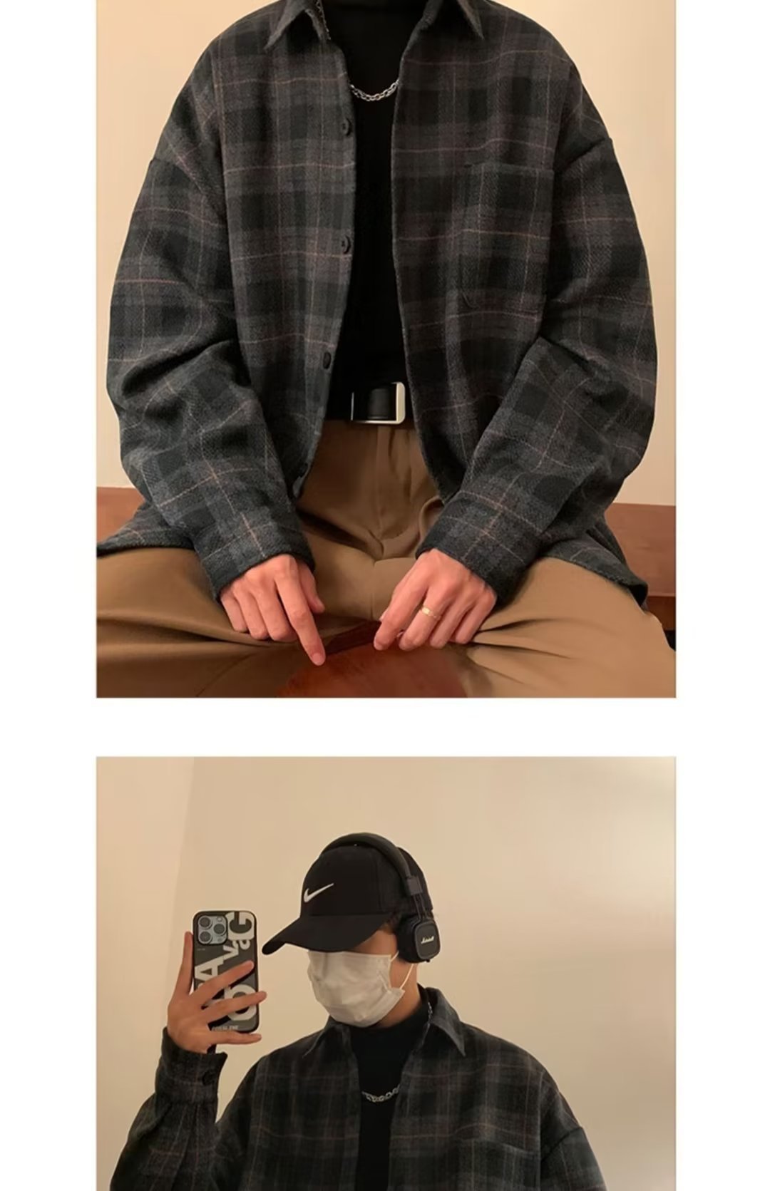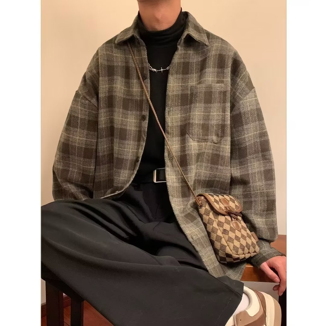 격자 무늬 셔츠 남자의 긴팔 하이 엔드 스타일 가을 느슨한 캐주얼 복고풍 일본 작업복 재킷 남성 셔츠 트렌드스토어 가기