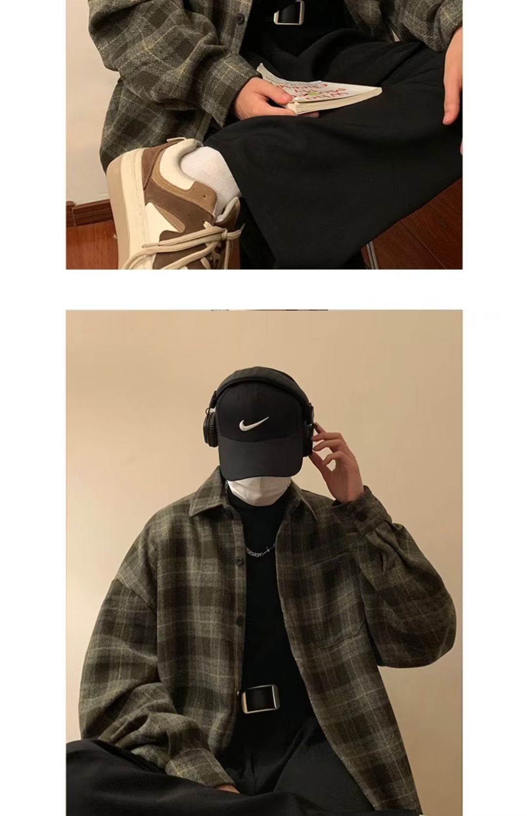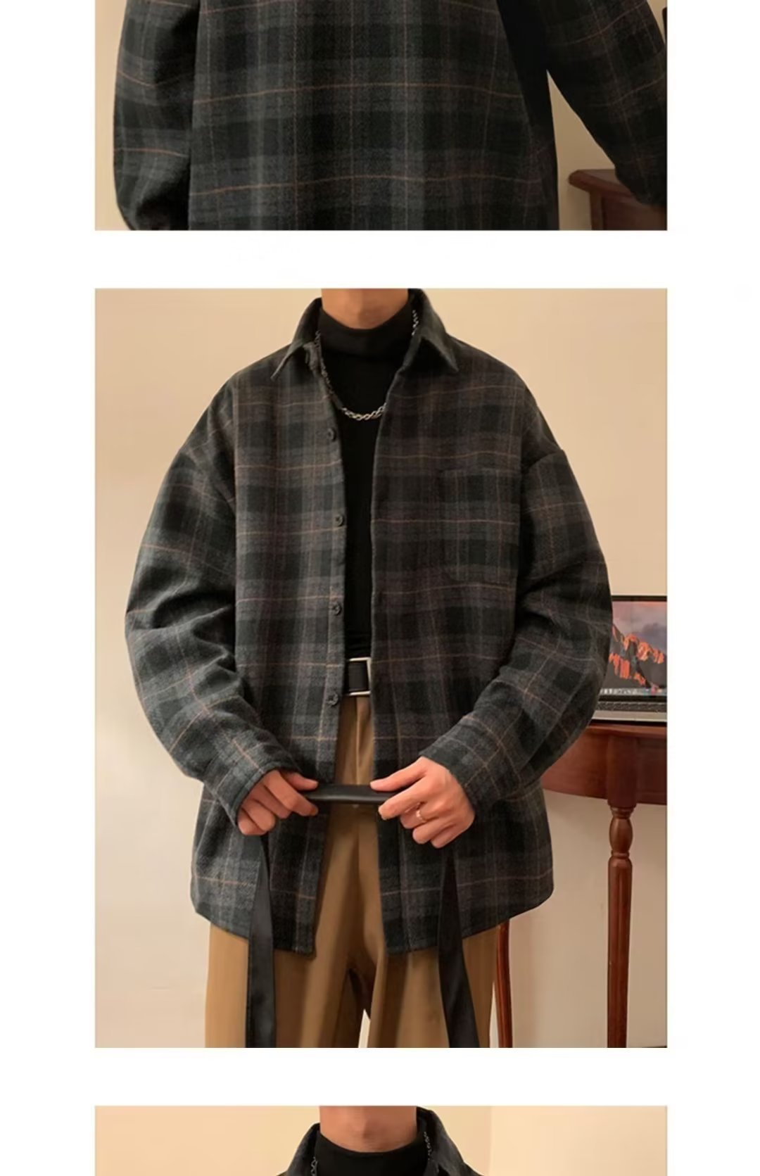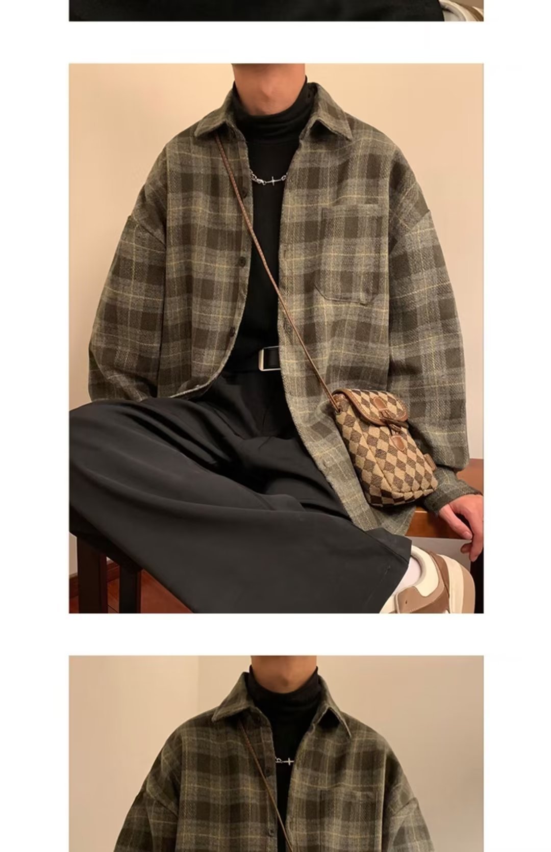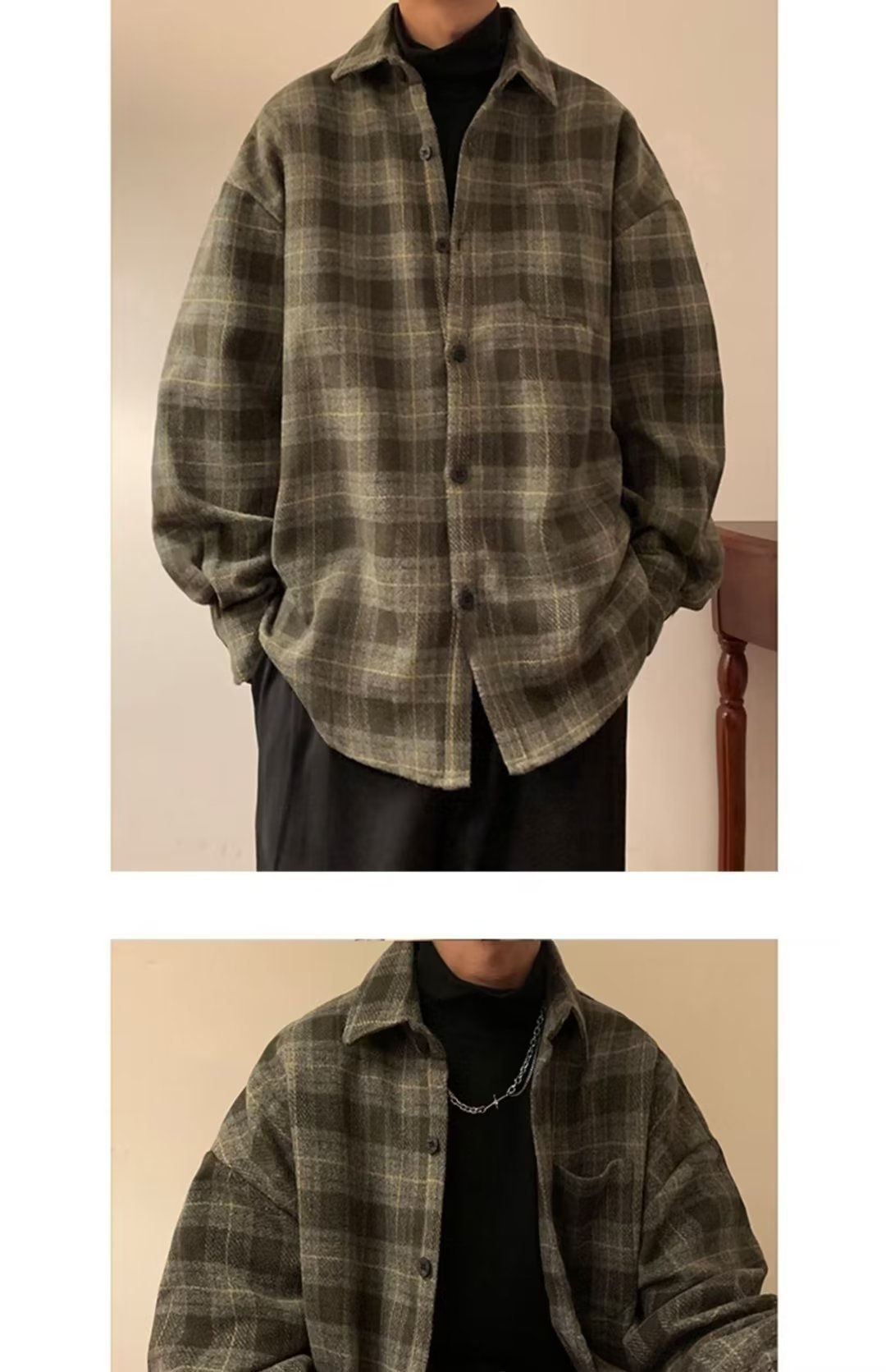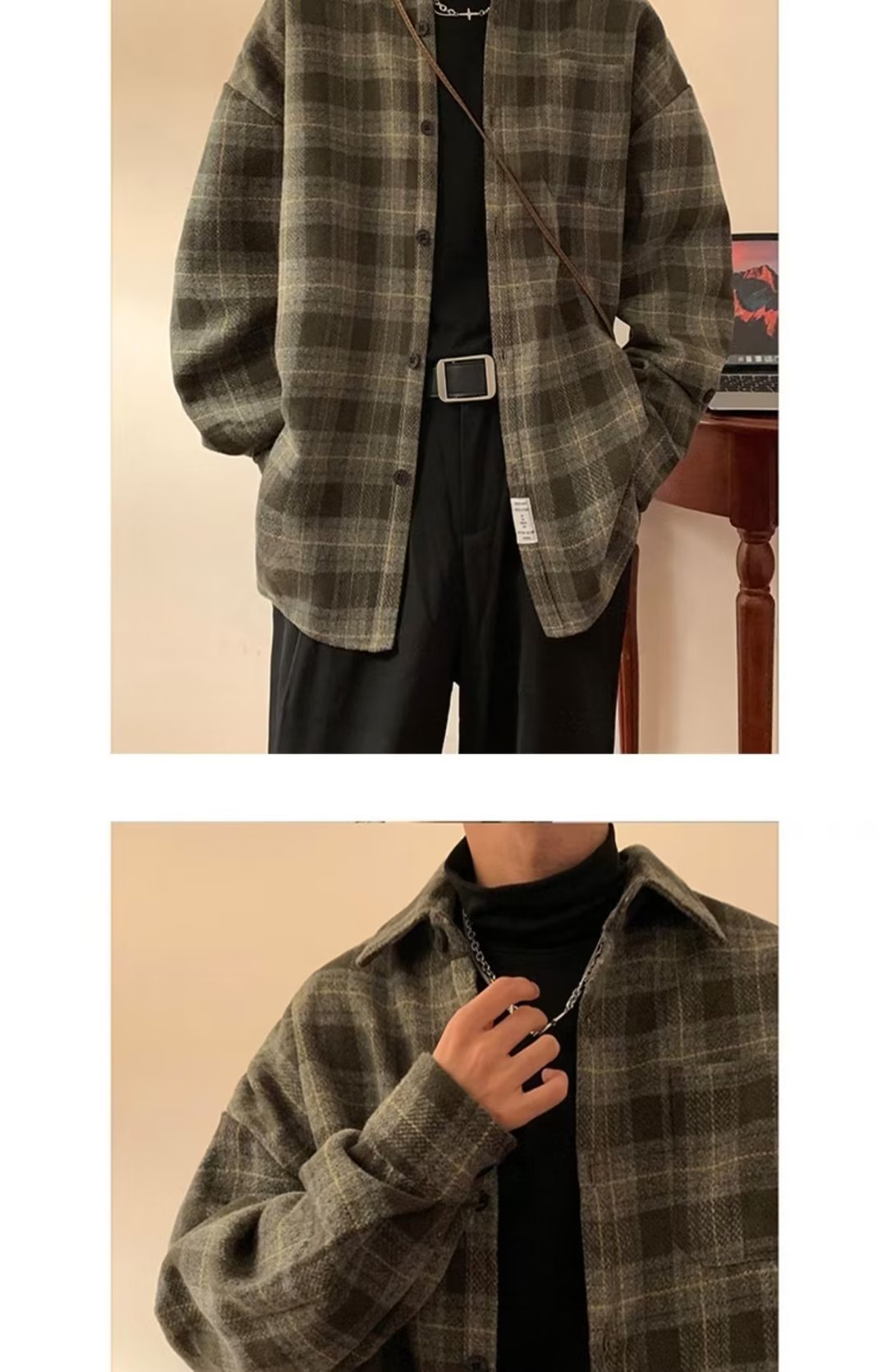 격자 무늬 셔츠 남자의 긴팔 하이 엔드 스타일 가을 느슨한 캐주얼 복고풍 일본 작업복 재킷 남성 셔츠 트렌드스토어 가기