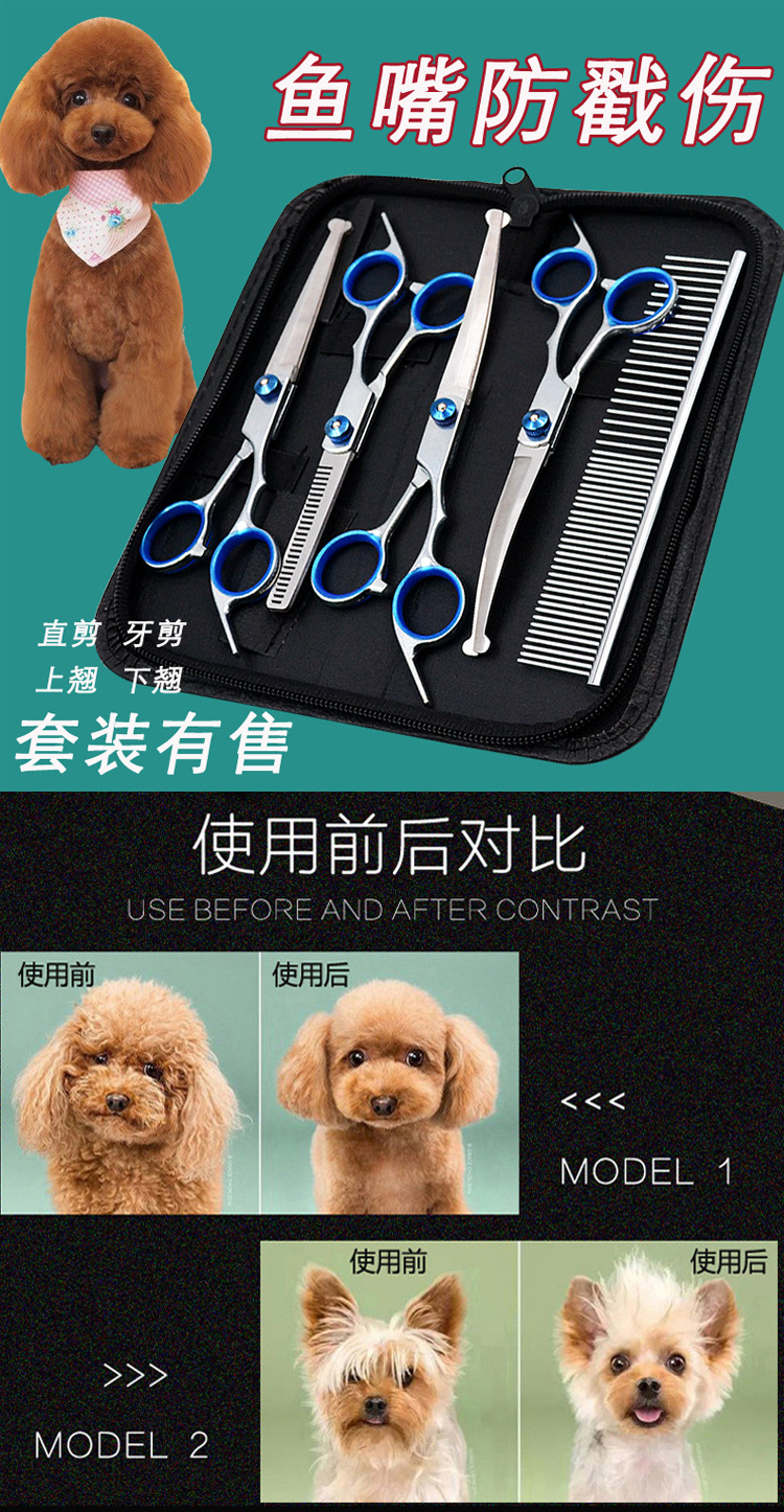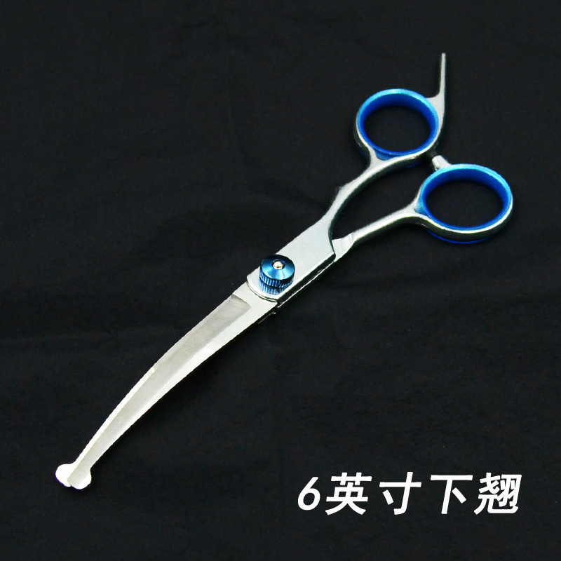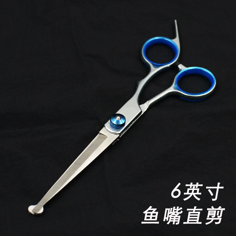 애완 동물 물고기 입 안전 가위 애완 동물 미용 이발사 가위 곡선 가위 얇은 컷 개 고양이 머리 피팅 도구스토어 가기