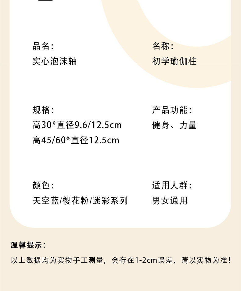 솔리드 요가 칼럼 초보자 폼 샤프트 근육 이완 메이스 얇은 종아리 마사지 스틱 피트니스 밸런스 스틱