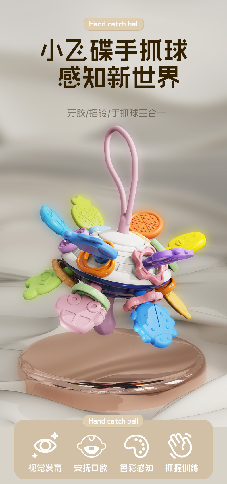 맨해튼 핸드 스크래치 볼 아기 장난감 0-1 세 퍼즐 조기 교육 아기 3-6 개월 파악 훈련 4 연삭 껌