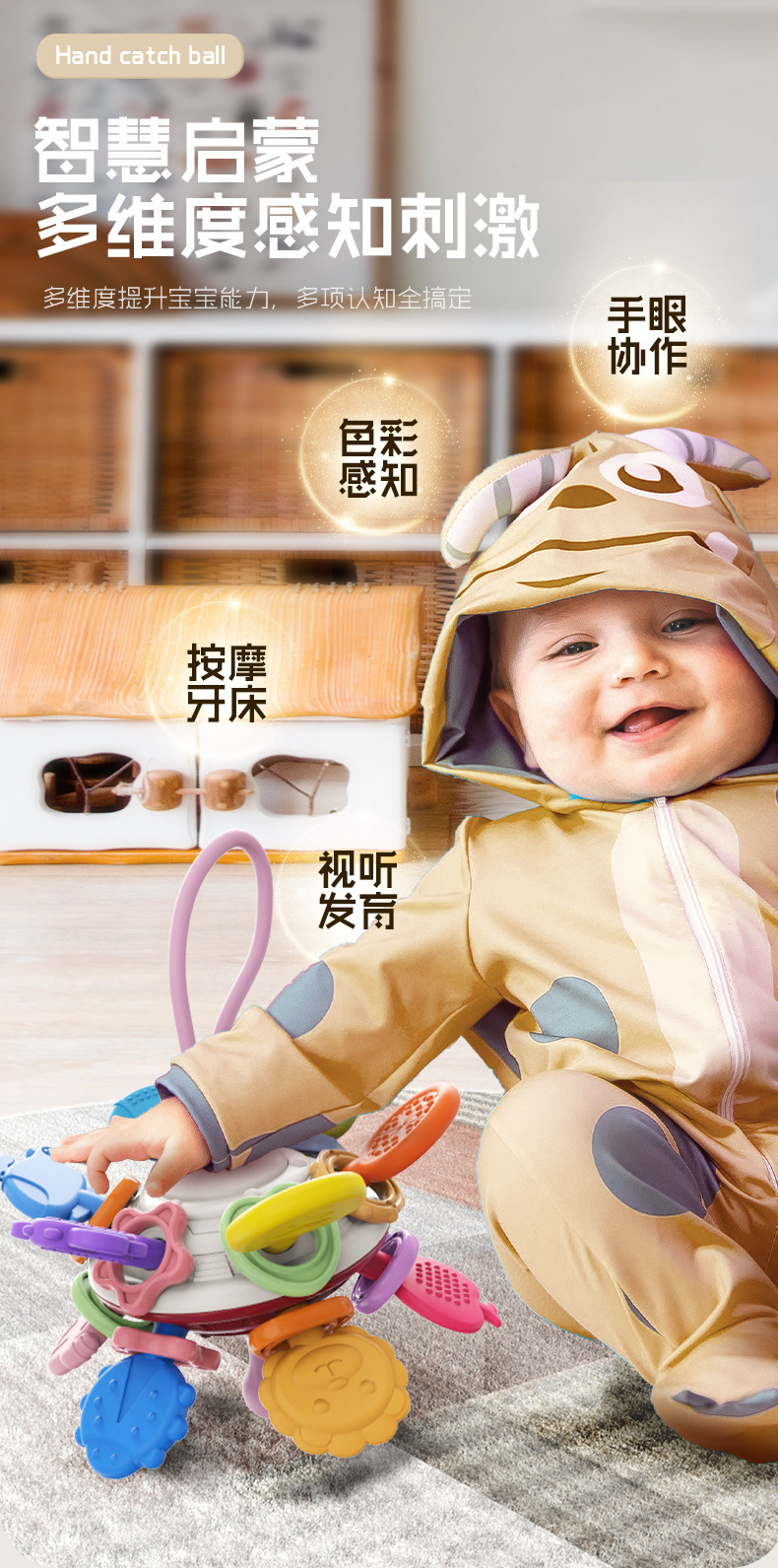 맨해튼 핸드 스크래치 볼 아기 장난감 0-1 세 퍼즐 조기 교육 아기 3-6 개월 파악 훈련 4 연삭 껌스토어 가기