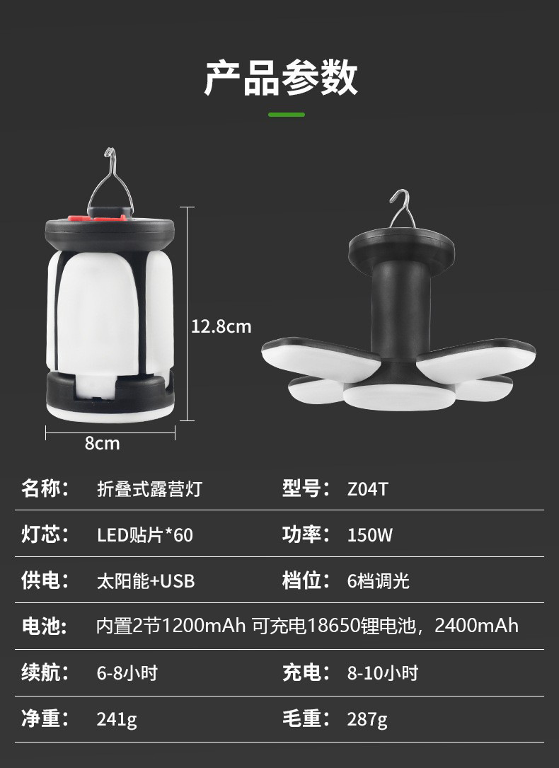 크로스 국경 핫 세일 조명 홈 선물 빛 태양 충전식 LED 텐트 라이트 3 페이지 4 페이지 야외 캠핑 라이트스토어 가기