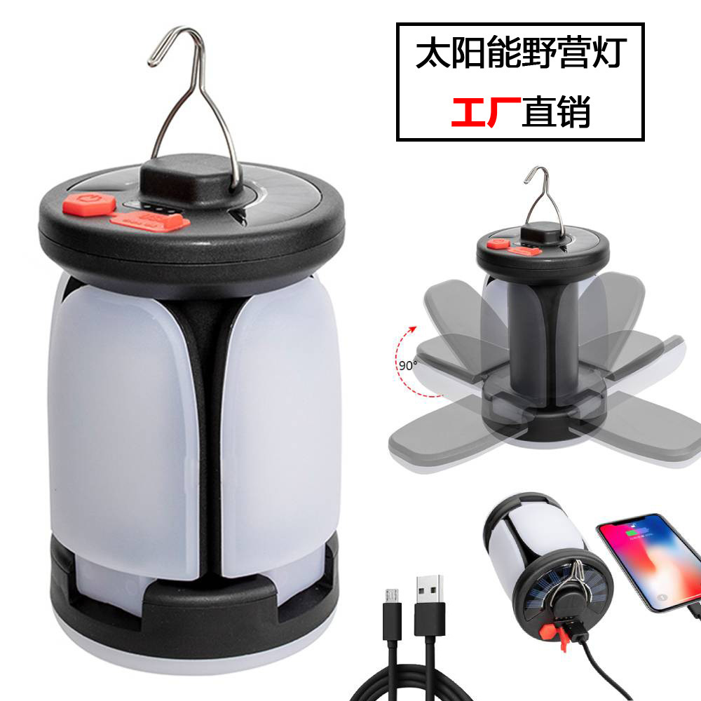 크로스 국경 핫 세일 조명 홈 선물 빛 태양 충전식 LED 텐트 라이트 3 페이지 4 페이지 야외 캠핑 라이트