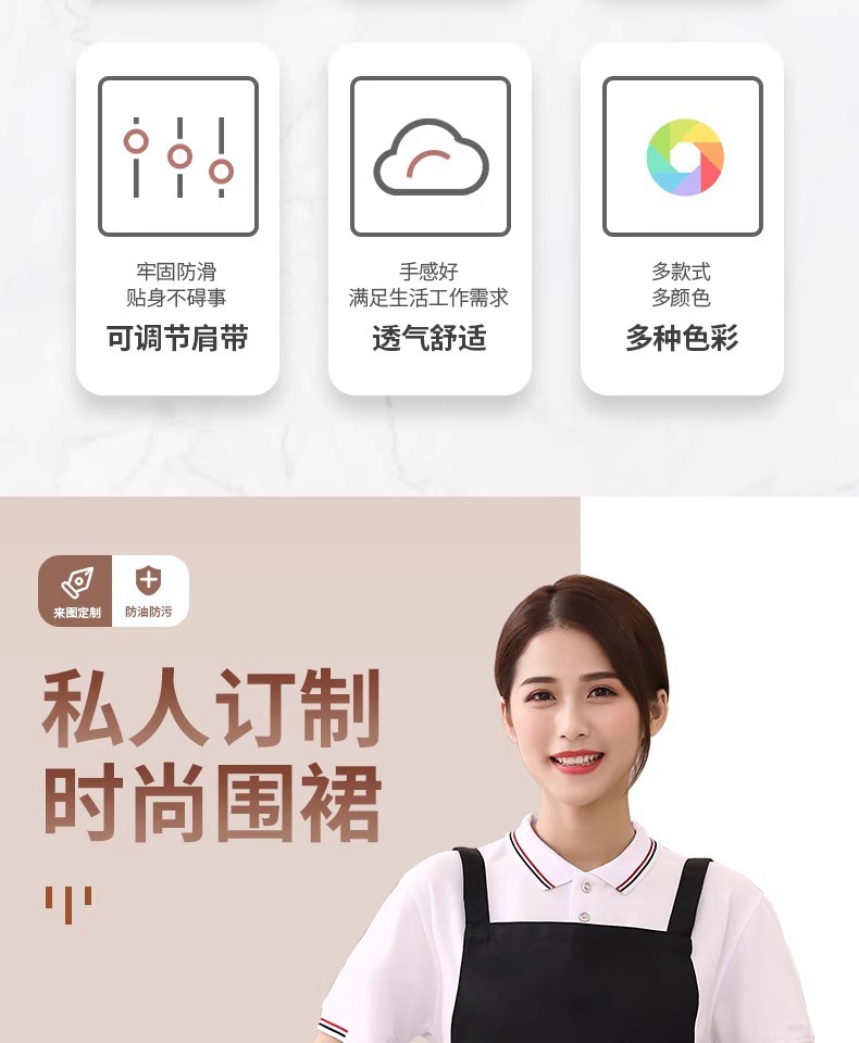 앞치마 사용자 정의 로고 인쇄 여성 및 남성 가정용 주방 방수 허리 사용자 정의 네일 아트 우유 차 가게 작업복