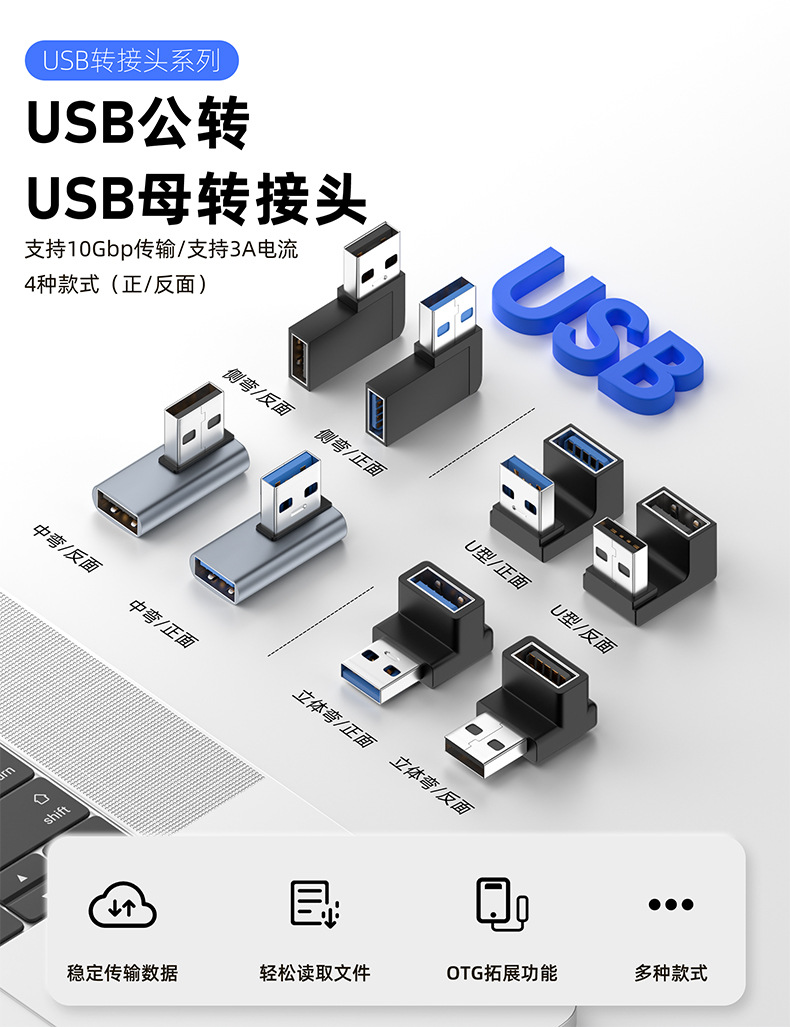 USB 수형-암형 어댑터 미드 벤드 USB3.0 어댑터 USB3.0 암형 확장 상하 벤딩 어댑터스토어 가기