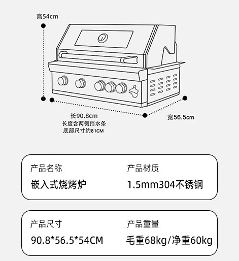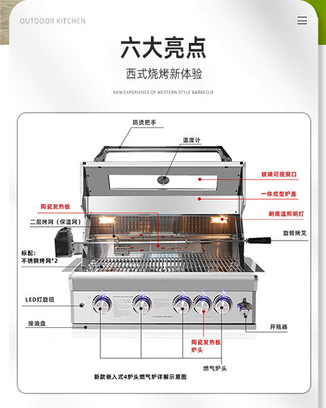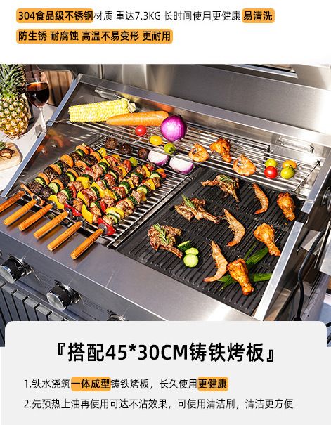 야외 정원 가스 그릴 내장형 숯불 그릴 BBQ 고급 미국식 BBQ 스테인리스 스틸 그릴 304스토어 가기