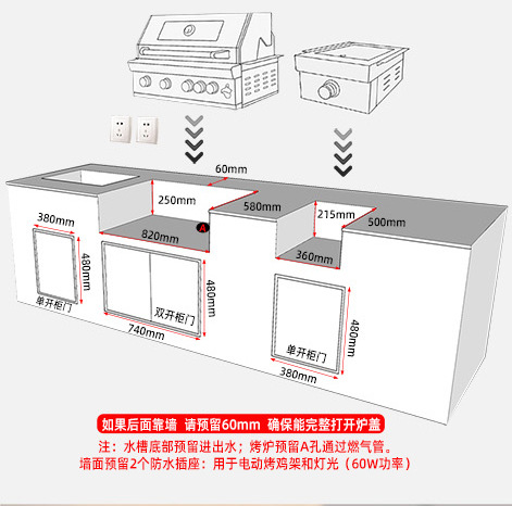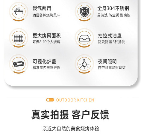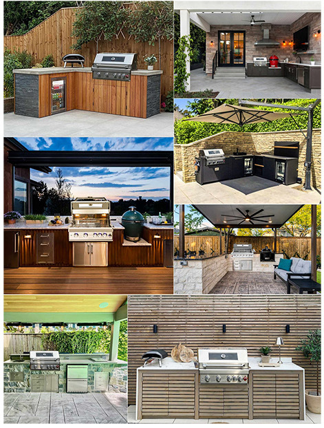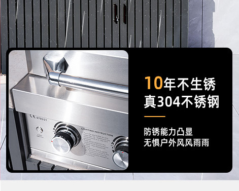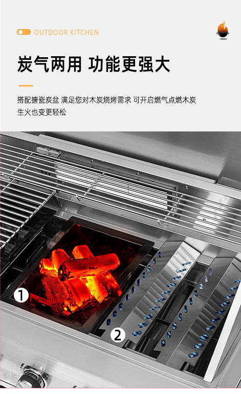야외 정원 가스 그릴 내장형 숯불 그릴 BBQ 고급 미국식 BBQ 스테인리스 스틸 그릴 304