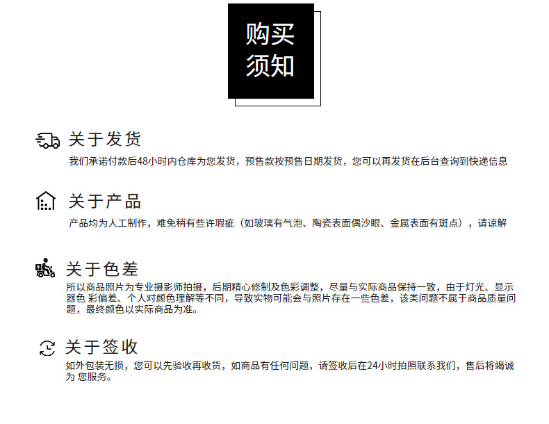 担,非质量问题概不退货哟! 另外再加一条尺寸的温馨提示:产品为手工测量,难免存在误差,请以实物为准