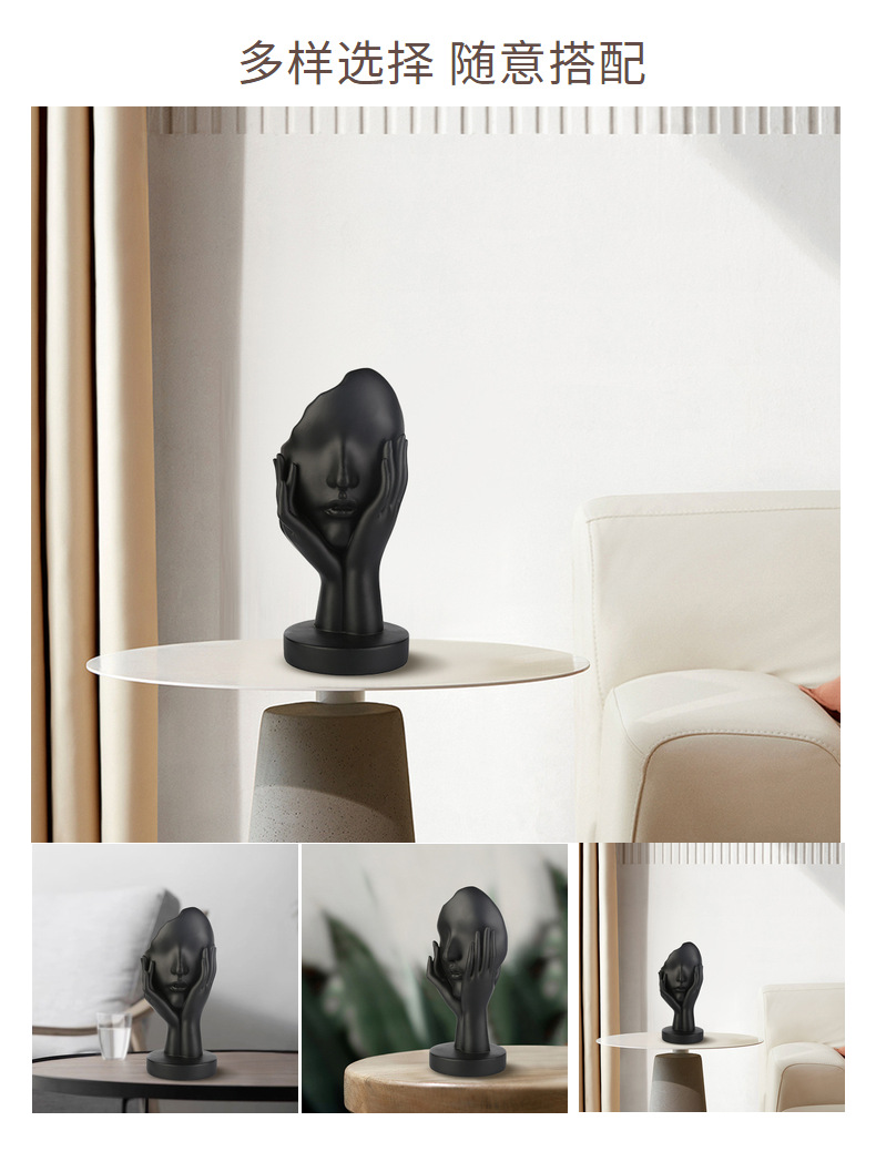 현대적이고 창의적인 미니멀리스트 추상 예술 얼굴 받침대 조각상 레진 공예품 서재 거실 가정용 탁상 장식품