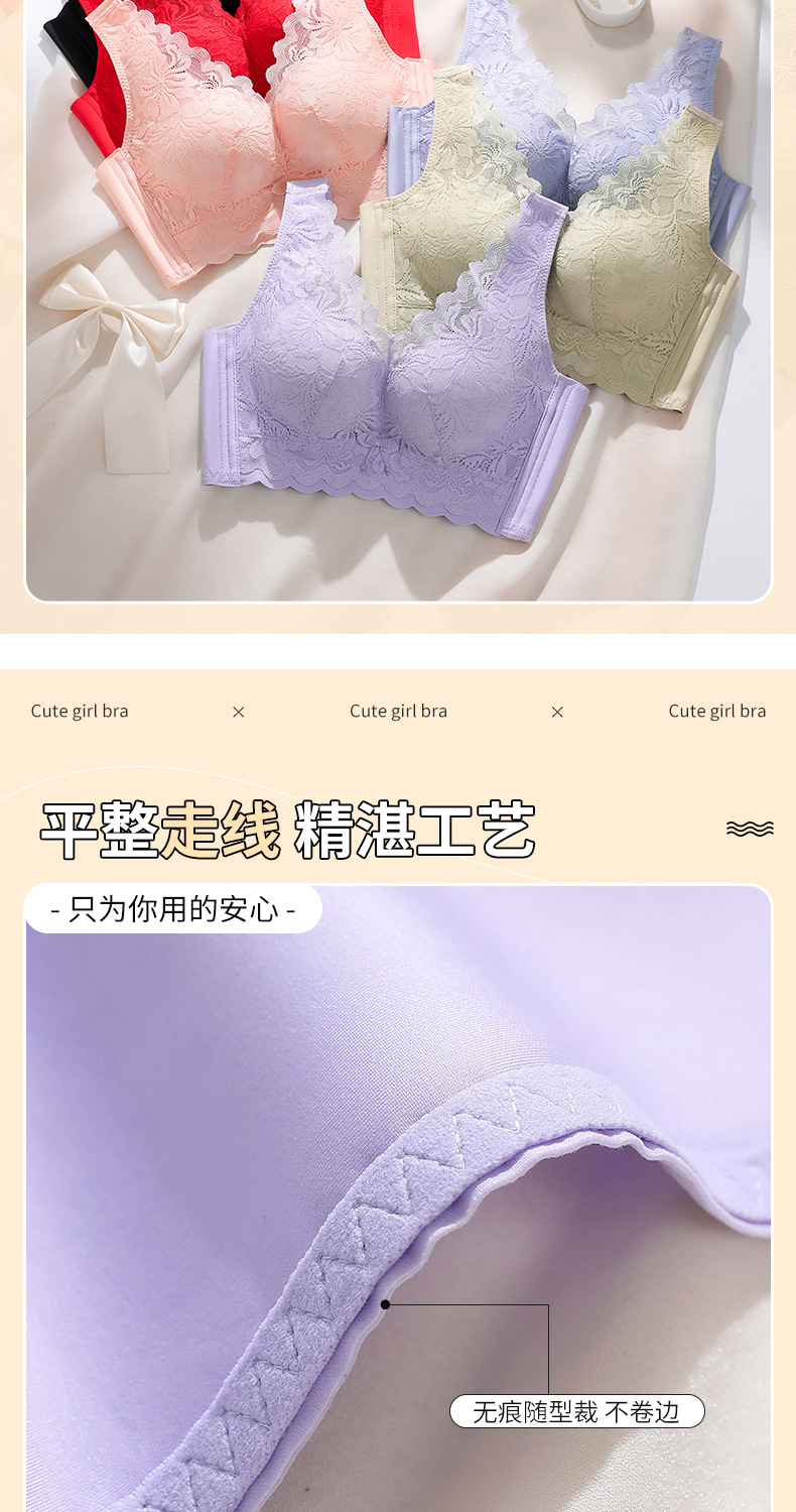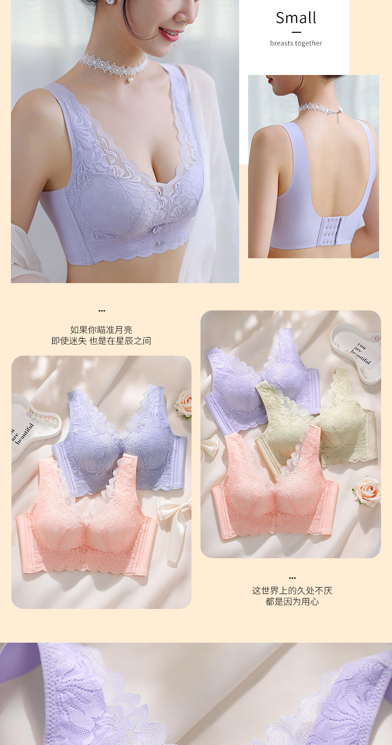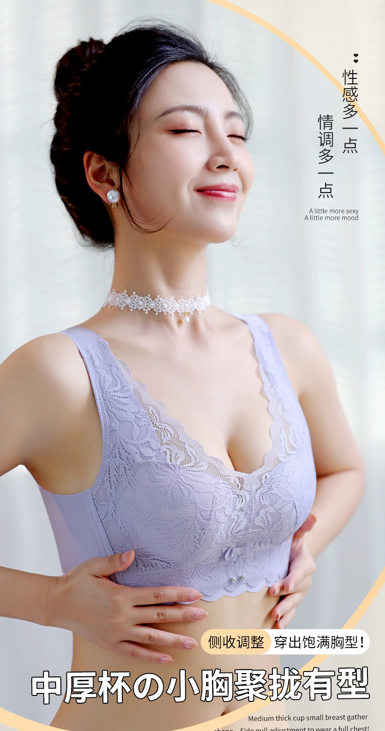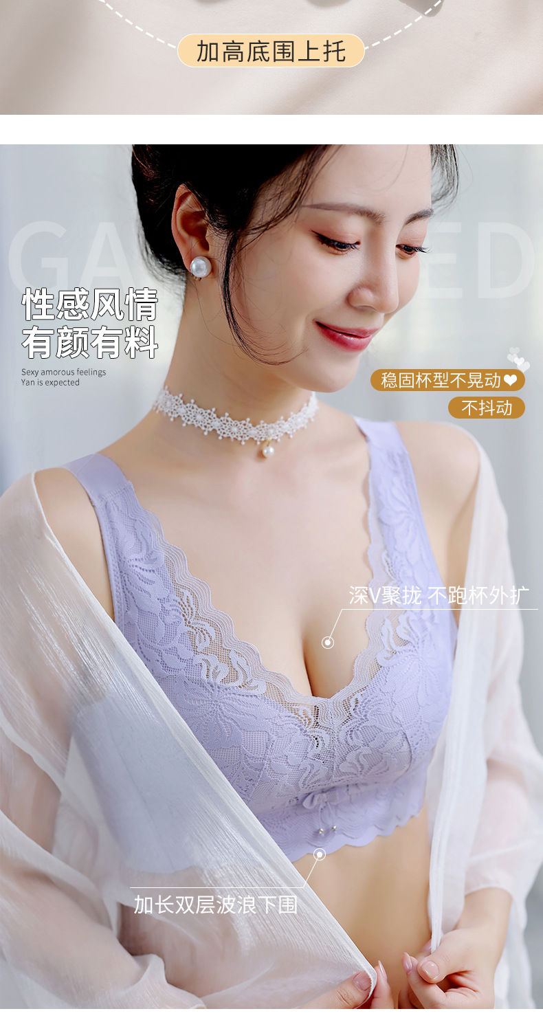 2024 새로운 섹시한 레이스 하이 사이드 폐쇄 무선 브래지어 작은 가슴이 유방 조절 얇은 두꺼운 내부를 밀어