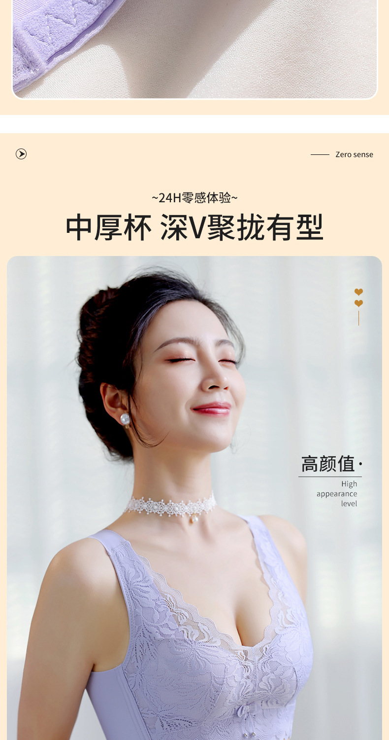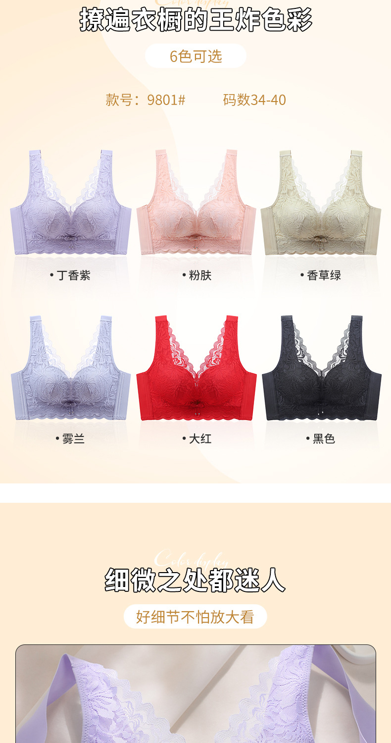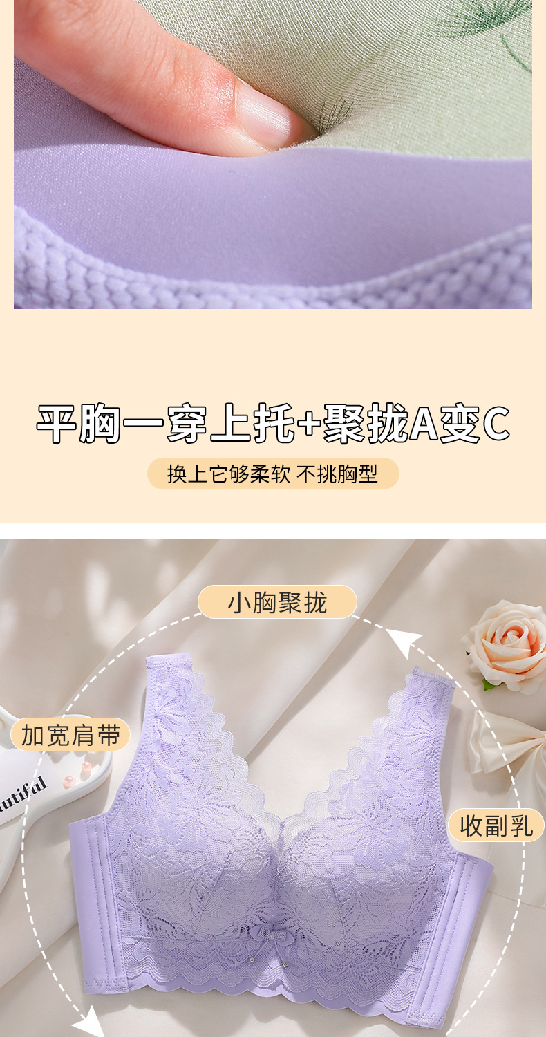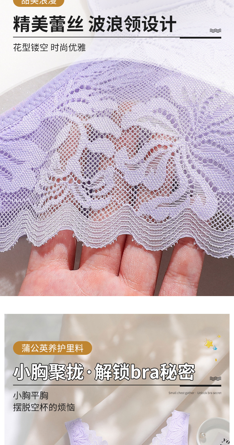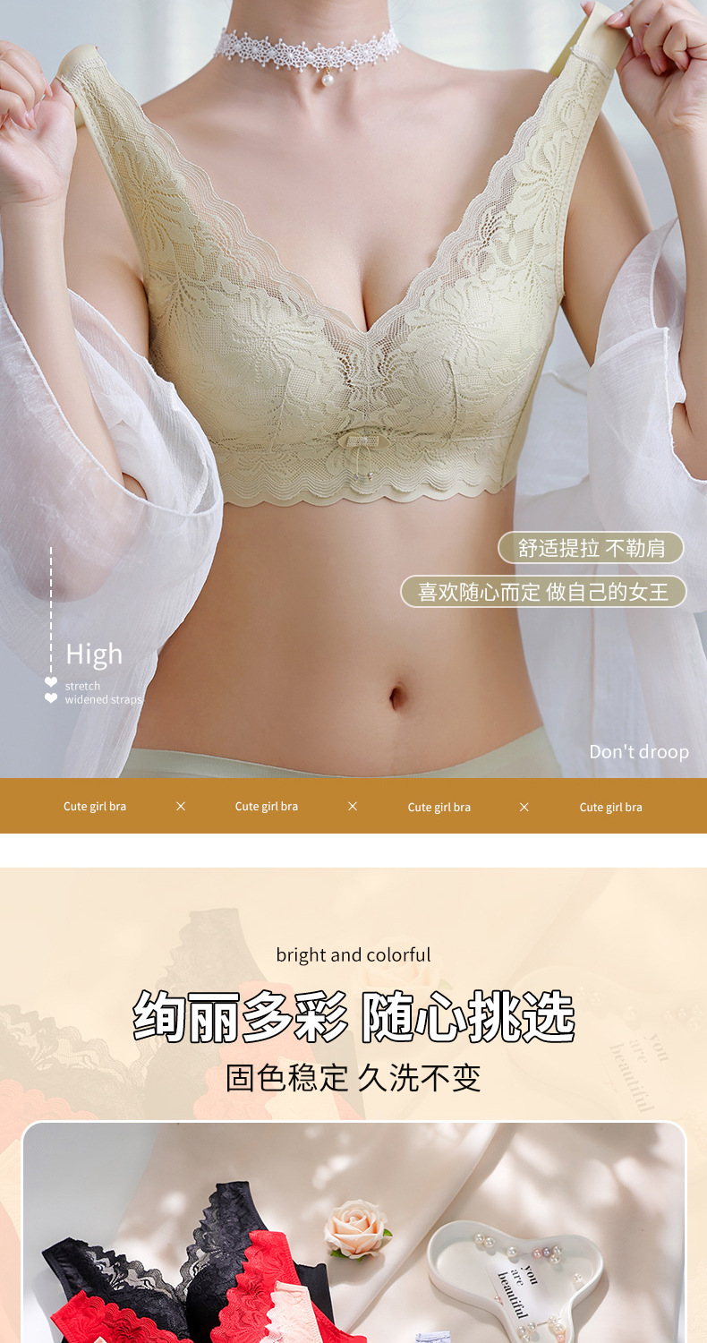 2024 새로운 섹시한 레이스 하이 사이드 폐쇄 무선 브래지어 작은 가슴이 유방 조절 얇은 두꺼운 내부를 밀어