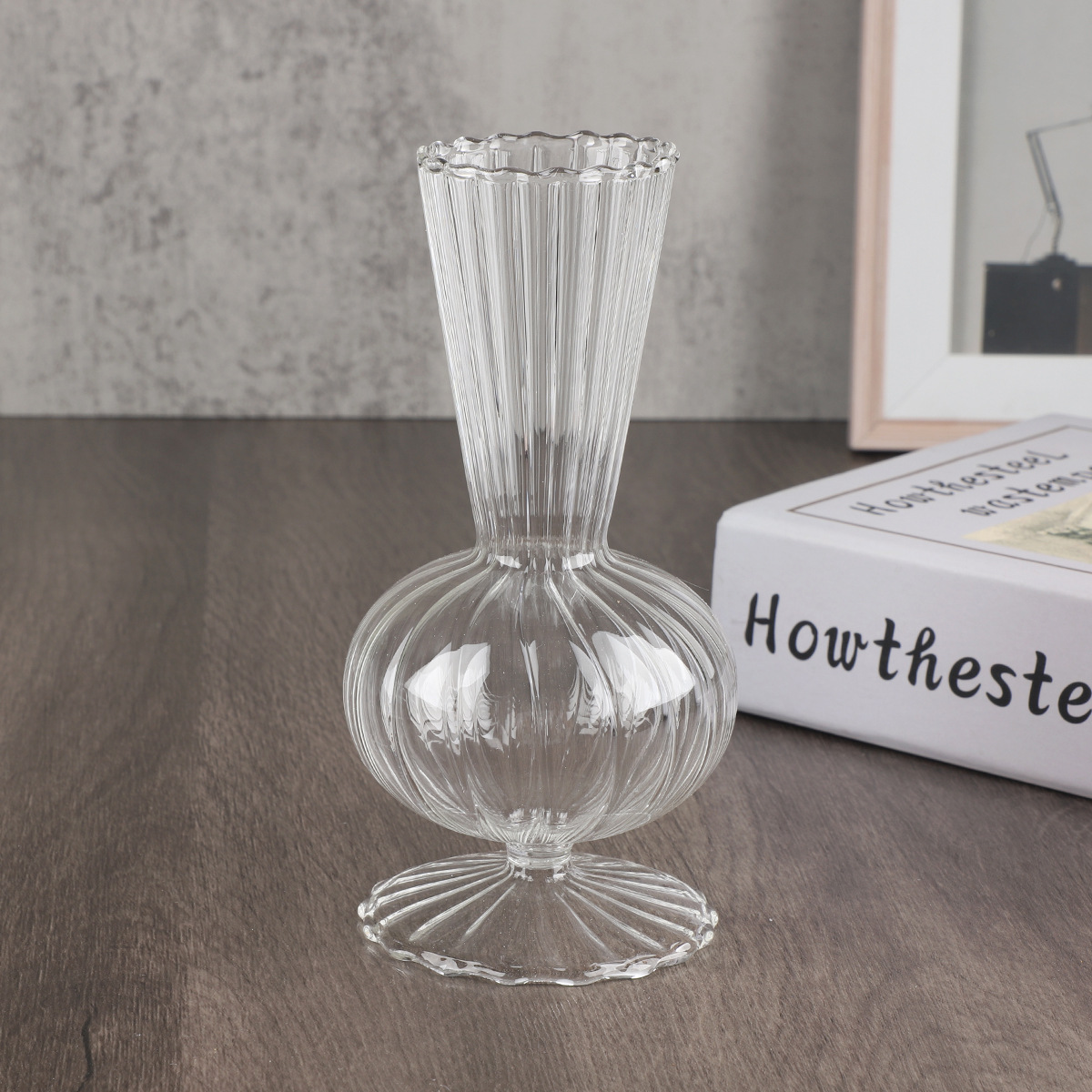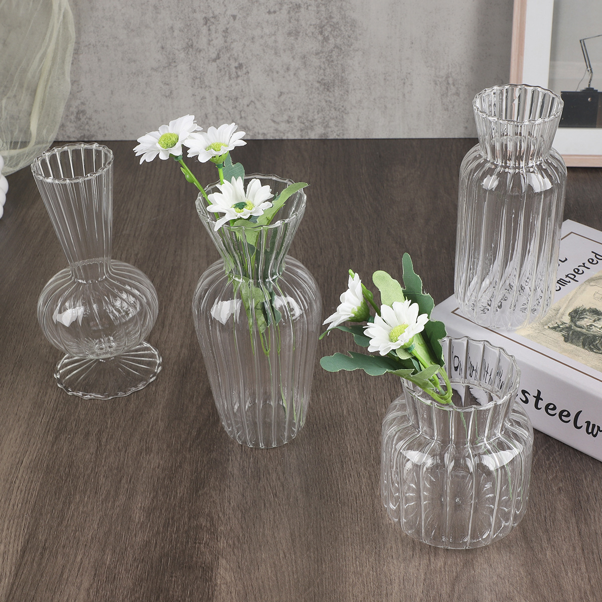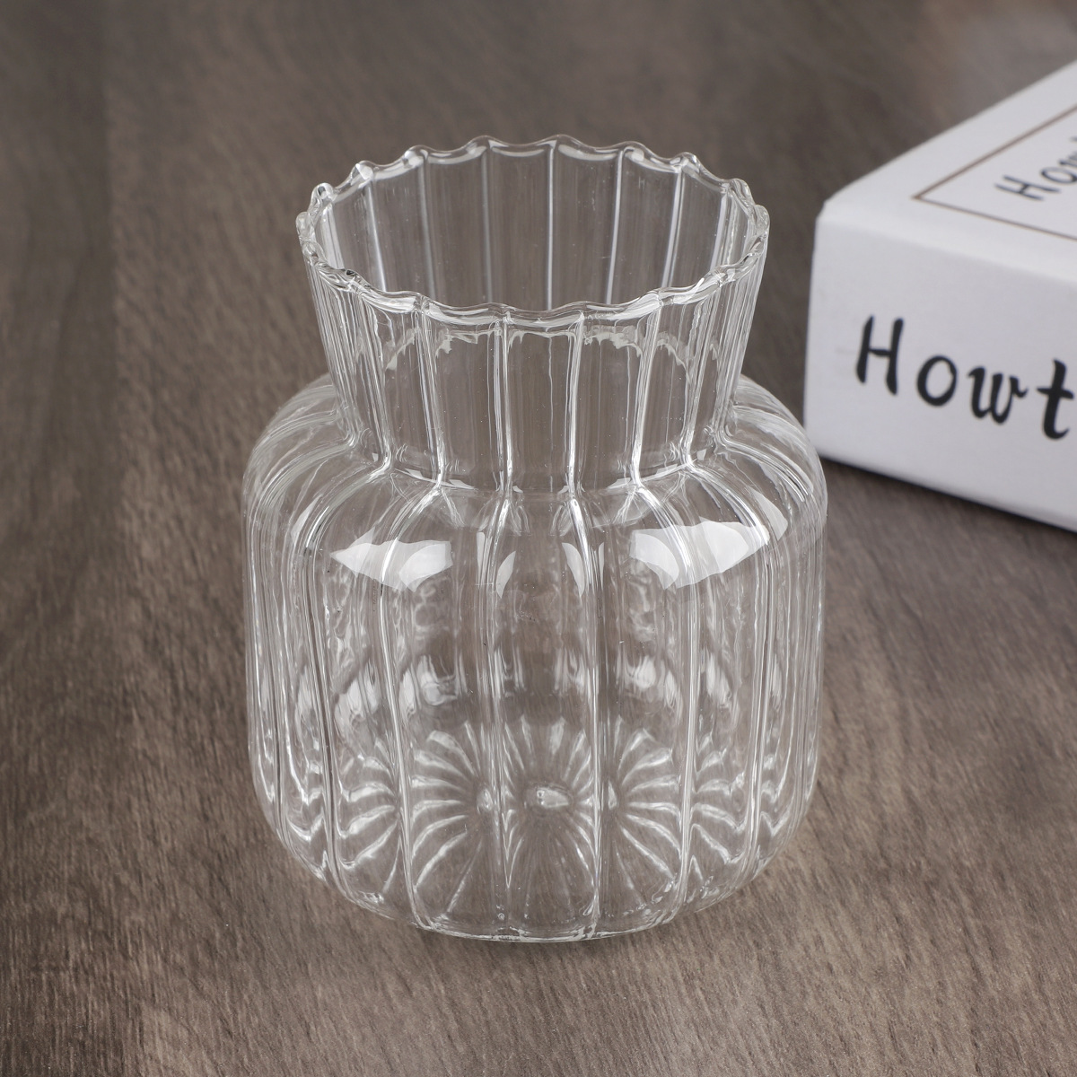 간단한 투명한 줄무늬 유리 꽃병 큰 직경 큰 배 병 수경 유리 꽃병 작은 유리 꽃병