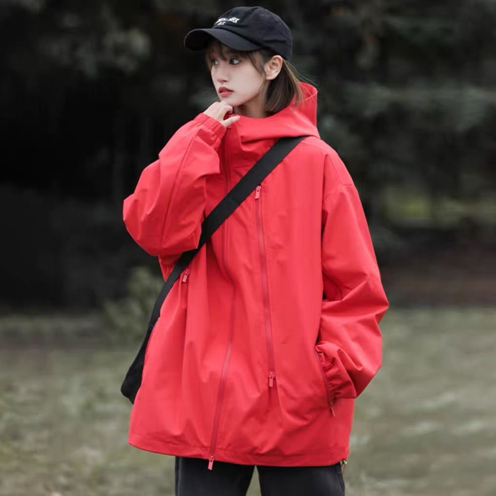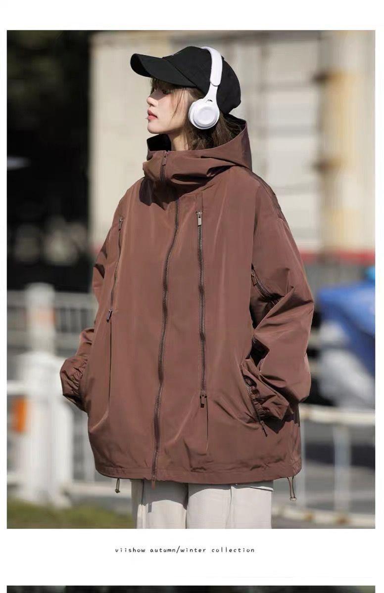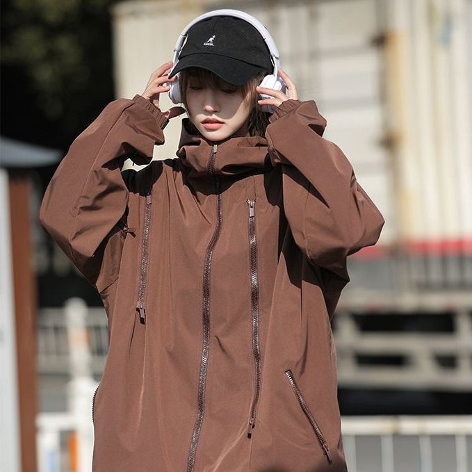 Sangyan 충전 재킷 여성의 봄과 가을 마운틴 스타일 트렌디 브랜드 아메리칸 스타일 지퍼 기능성 느슨한 작업복 재킷 커플스토어 가기
