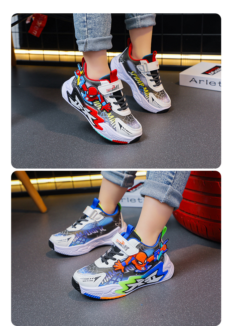 가을과 겨울 새로운 중학교 어린이 거미 슈퍼맨 더러운 저항 캐주얼 신발 어린 소년 패션 부드러운 바닥 가죽 미끄럼 방지 운동화