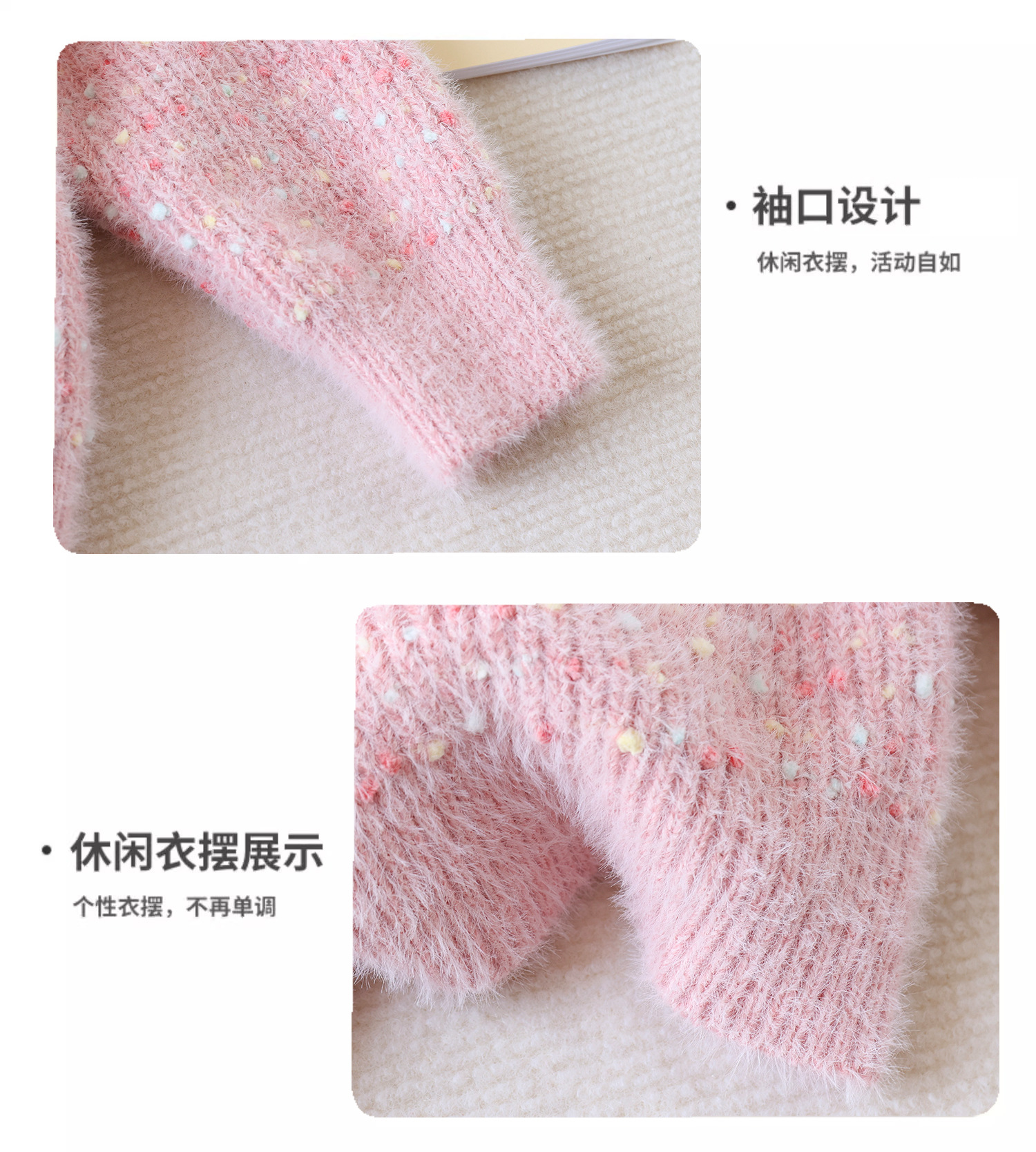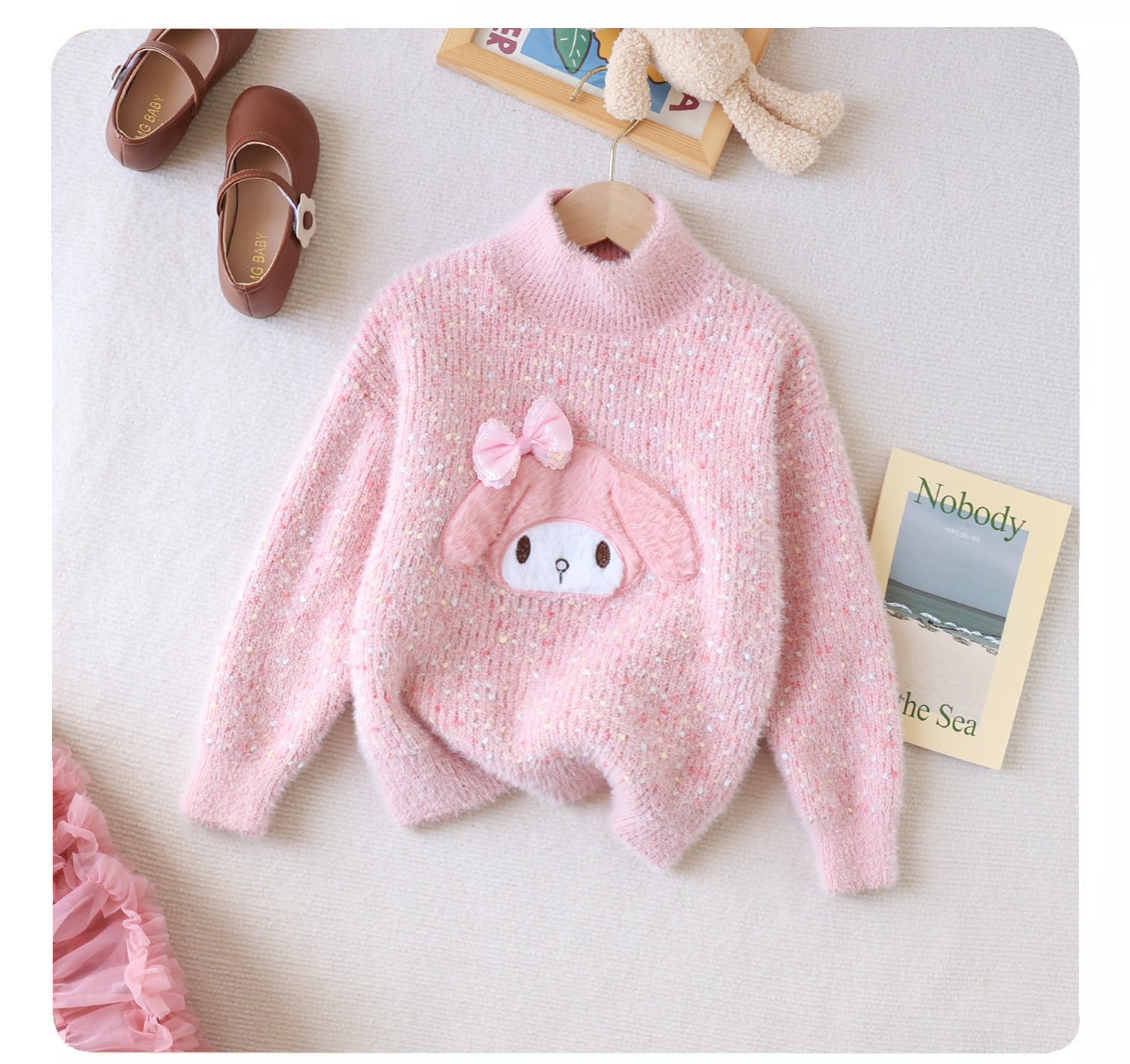 • Guochaohong 자수 토끼 곰팡이 가장자리 스웨터