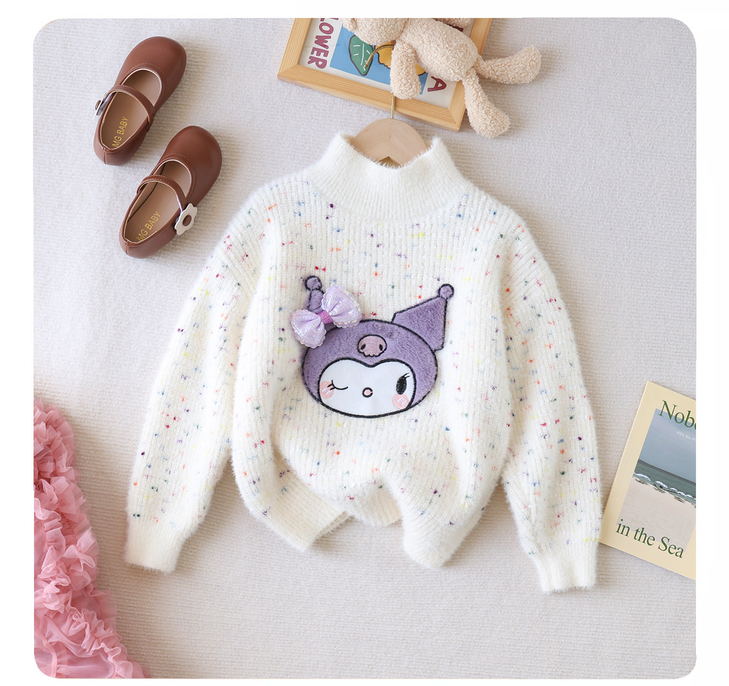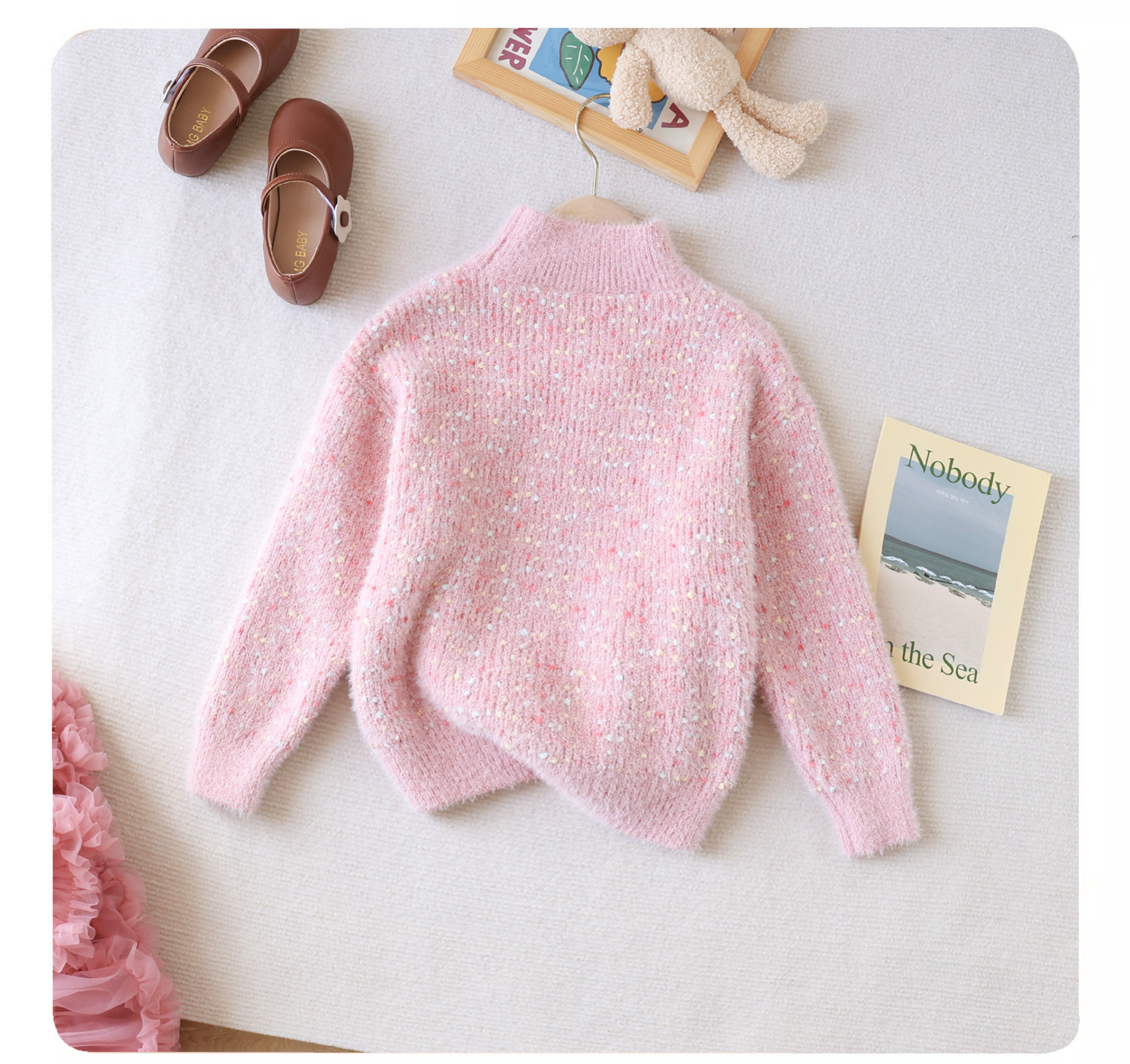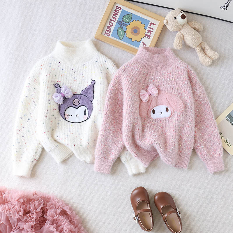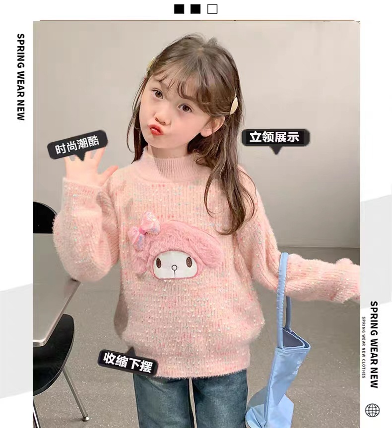 여아 스웨터 2023 새로운 가을과 겨울 풀오버 두꺼운 소녀의 해 스타일 웨스턴 스타일 코트 어린이 느슨한 니트 스웨터