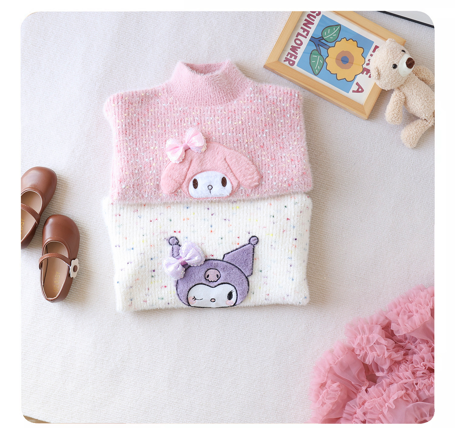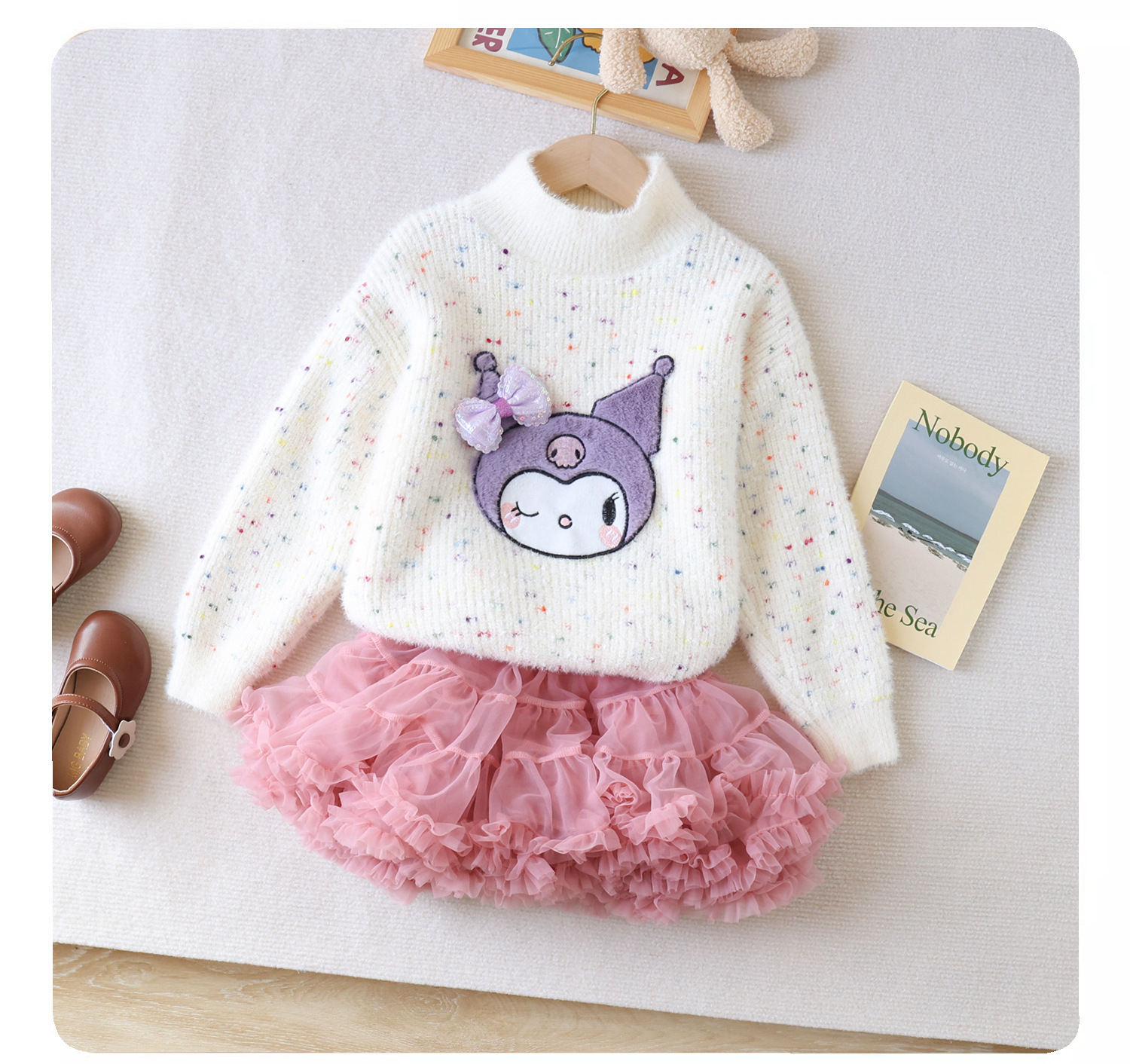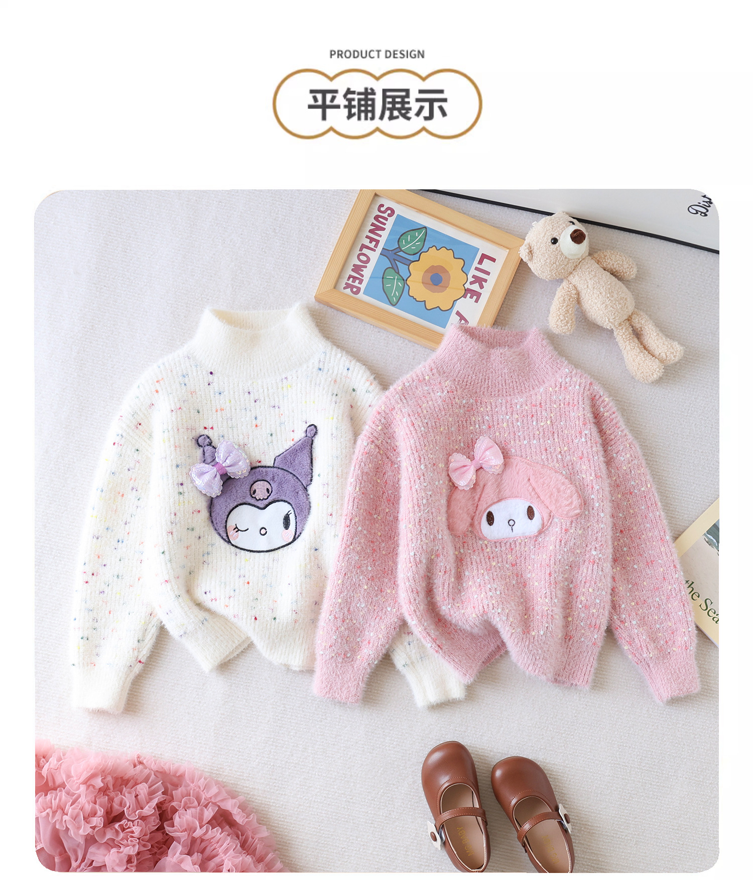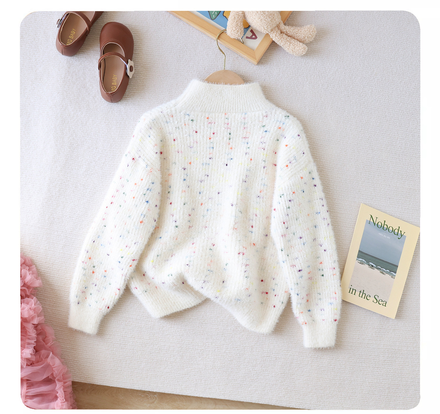 여아 스웨터 2023 새로운 가을과 겨울 풀오버 두꺼운 소녀의 해 스타일 웨스턴 스타일 코트 어린이 느슨한 니트 스웨터