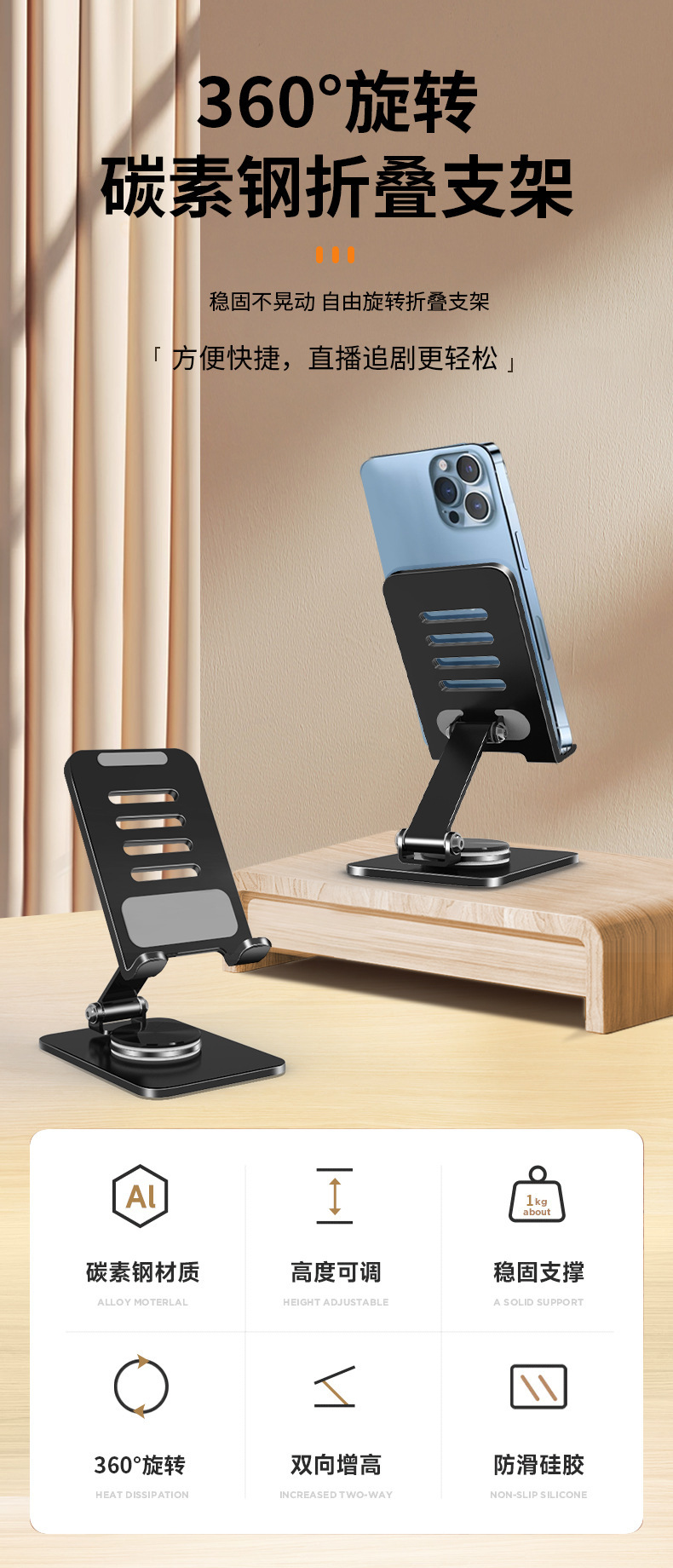 금속 휴대 전화 브래킷 회전 간단한 브래킷 데스크탑 태블릿 휴대 전화 브래킷 휴대용 접이식 게으른 라이브 방송 브래킷