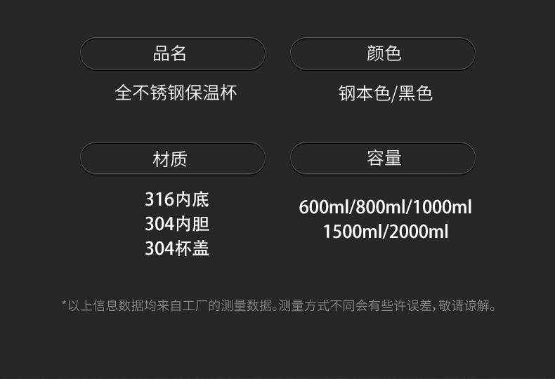 316 스테인레스 스틸 올스틸 보온병 컵 남성용 대용량 휴대용 야외 피트니스 주전자 수출 러시아 물 컵스토어 가기