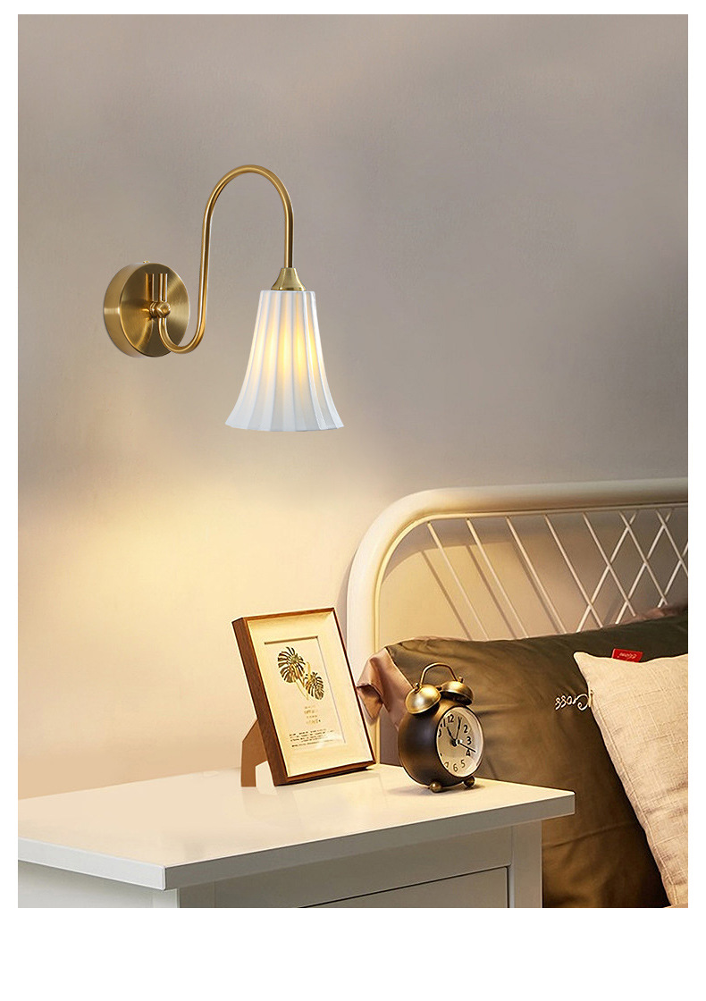 프랑스 스타일 벽 램프 골동품 세라믹 유리 램프 침실 거실 TV 배경 벽 현대 간단한 침대 옆 램프 연구