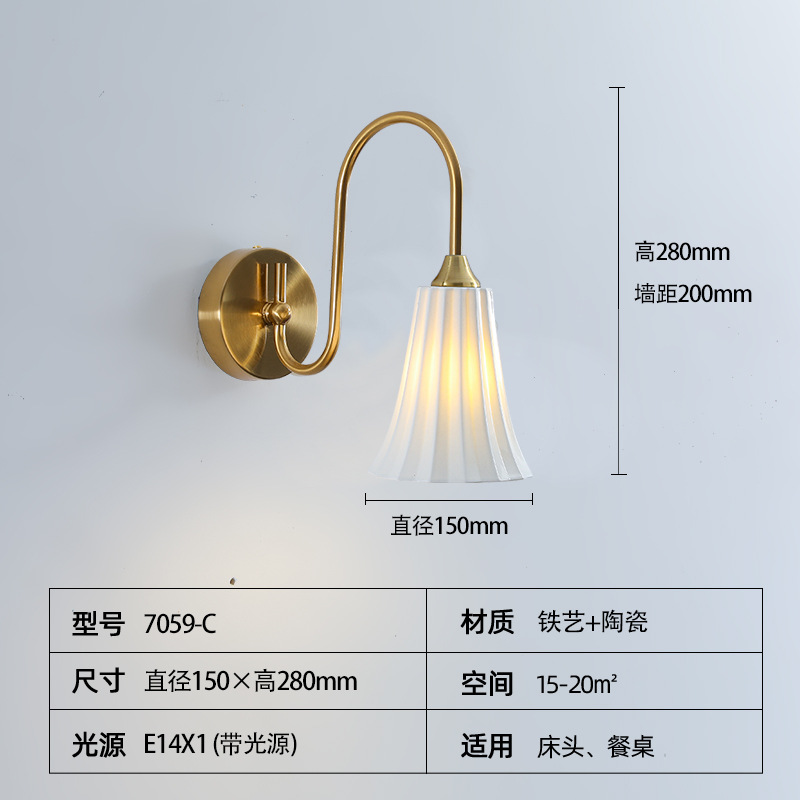프랑스 스타일 벽 램프 골동품 세라믹 유리 램프 침실 거실 TV 배경 벽 현대 간단한 침대 옆 램프 연구스토어 가기