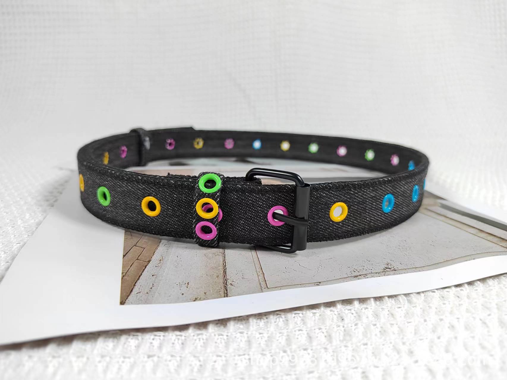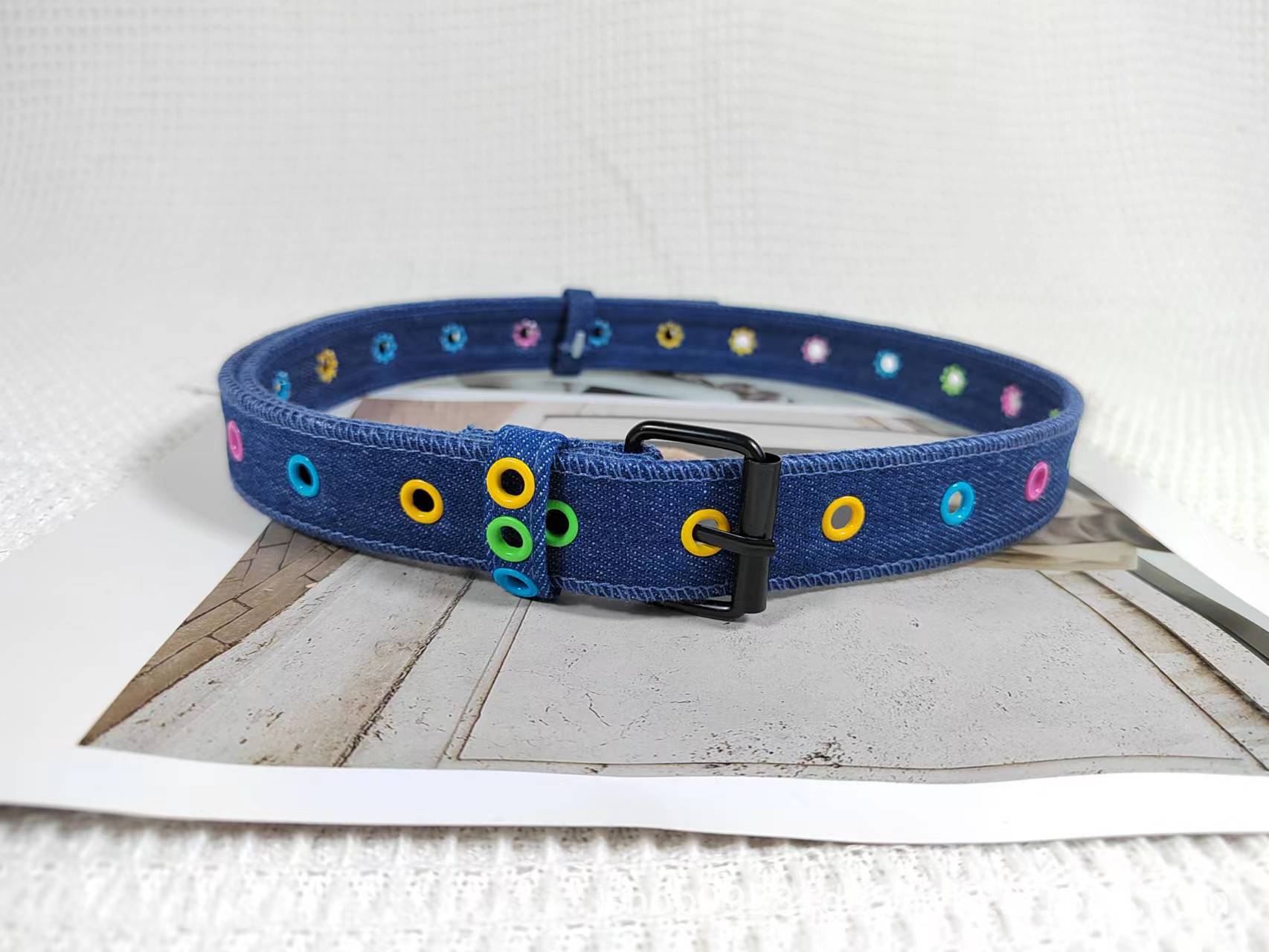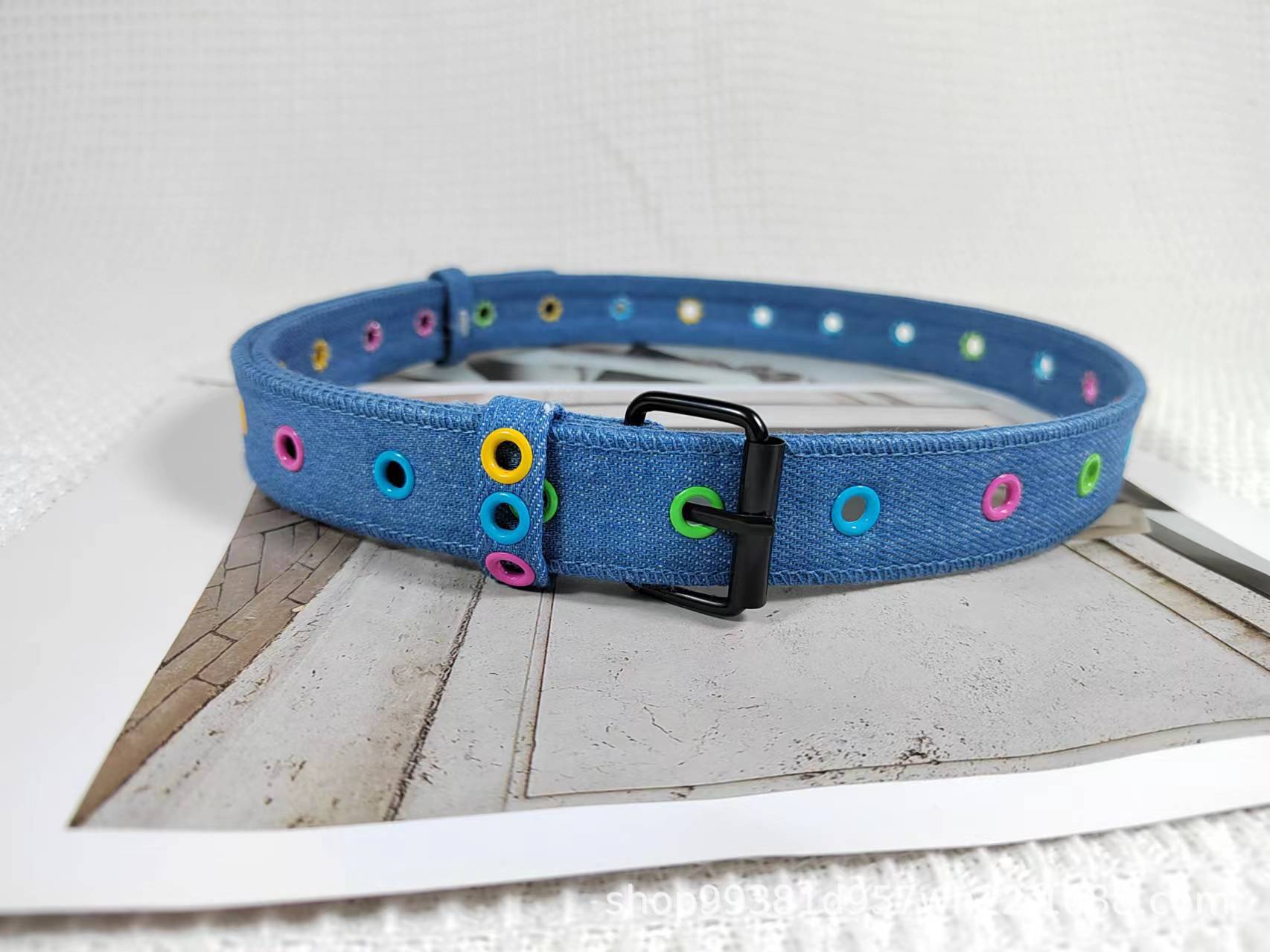 2023 한국식 패션 올매치 청바지, 벨트 팬츠와 펀치 프리 장식 여성 학생 벨트