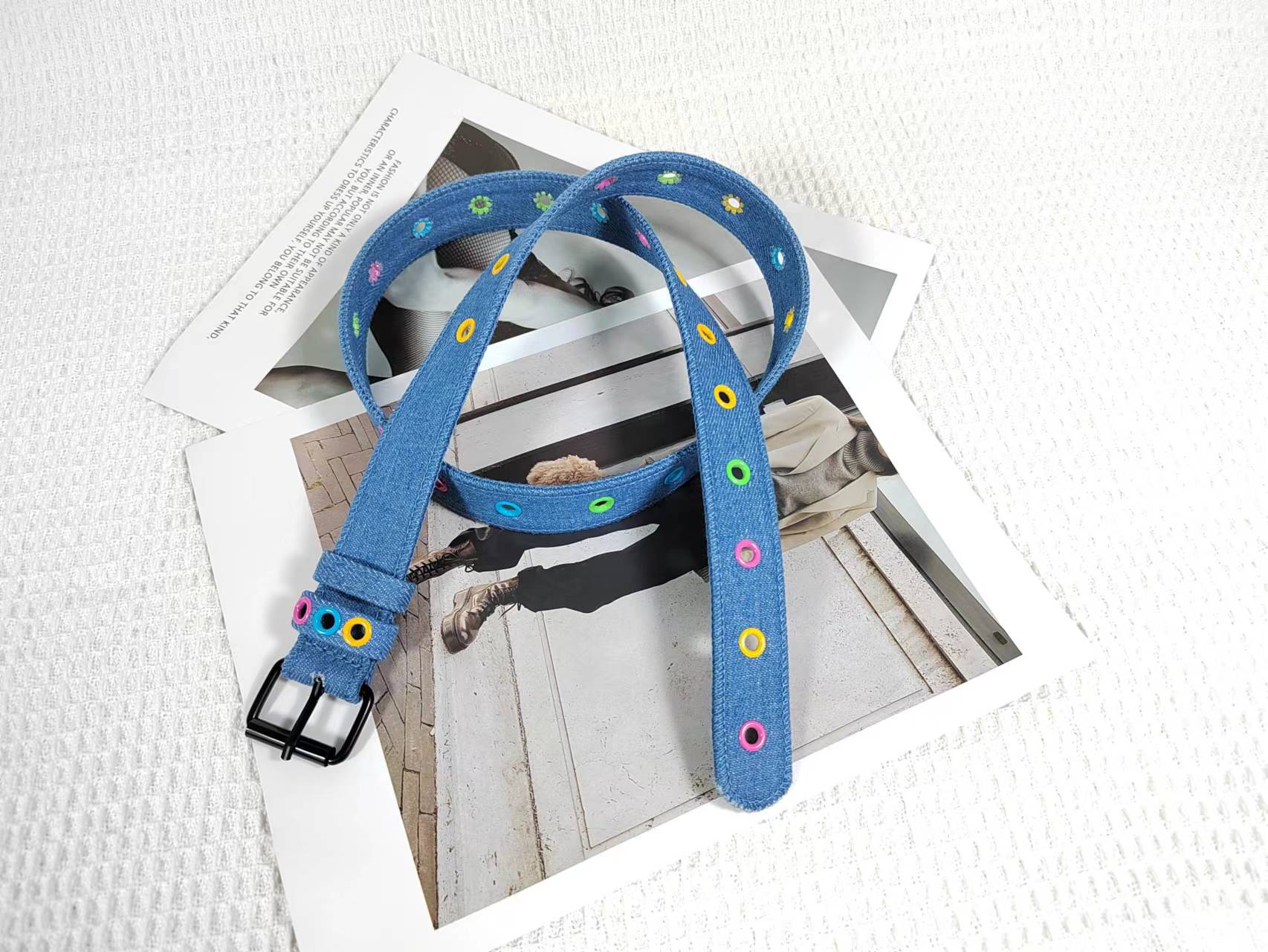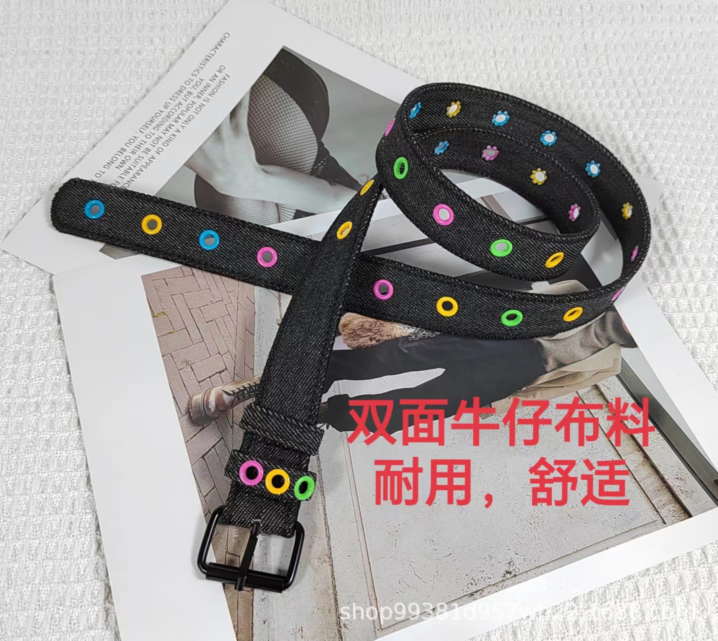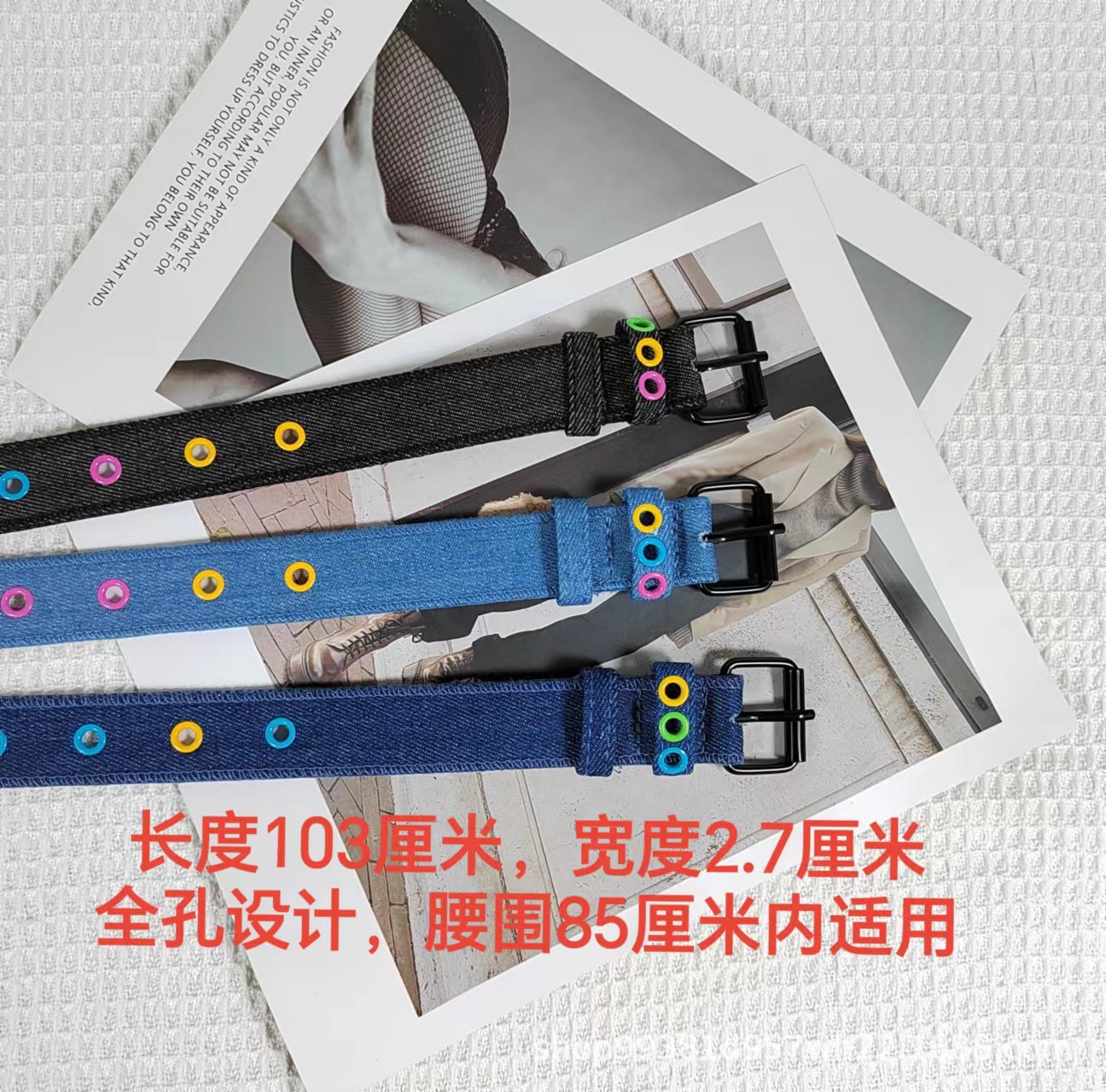 2023 한국식 패션 올매치 청바지, 벨트 팬츠와 펀치 프리 장식 여성 학생 벨트스토어 가기