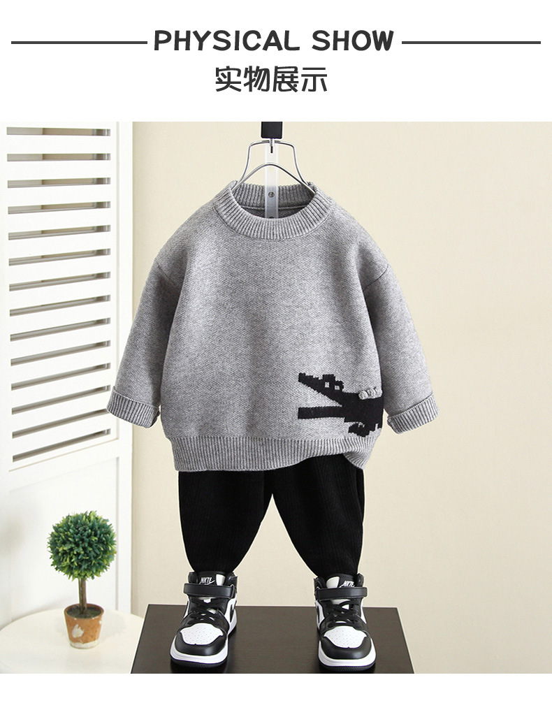 4398 어린이 스웨터 남아용 가을 겨울 모델 2025 신상 아기 겨울 니트웨어 남아용 겨울 모직 옷스토어 가기