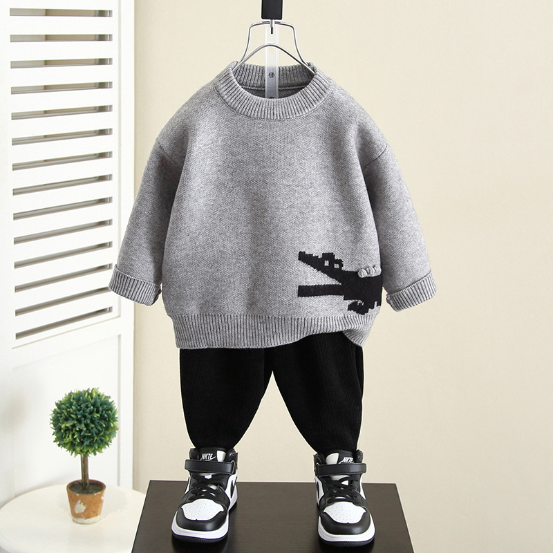 4398 어린이 스웨터 남아용 가을 겨울 모델 2025 신상 아기 겨울 니트웨어 남아용 겨울 모직 옷