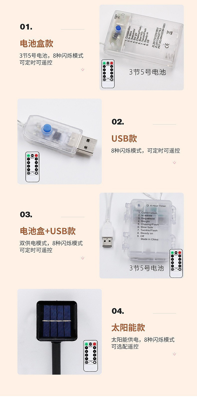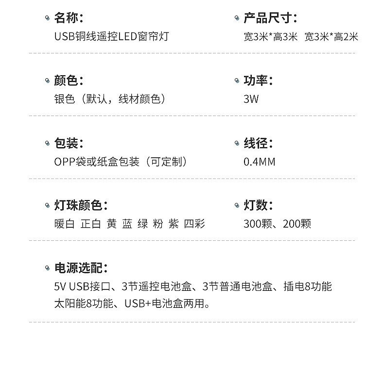 • 3*1 m 100 라이트 USB 리모컨 (후크 없음)