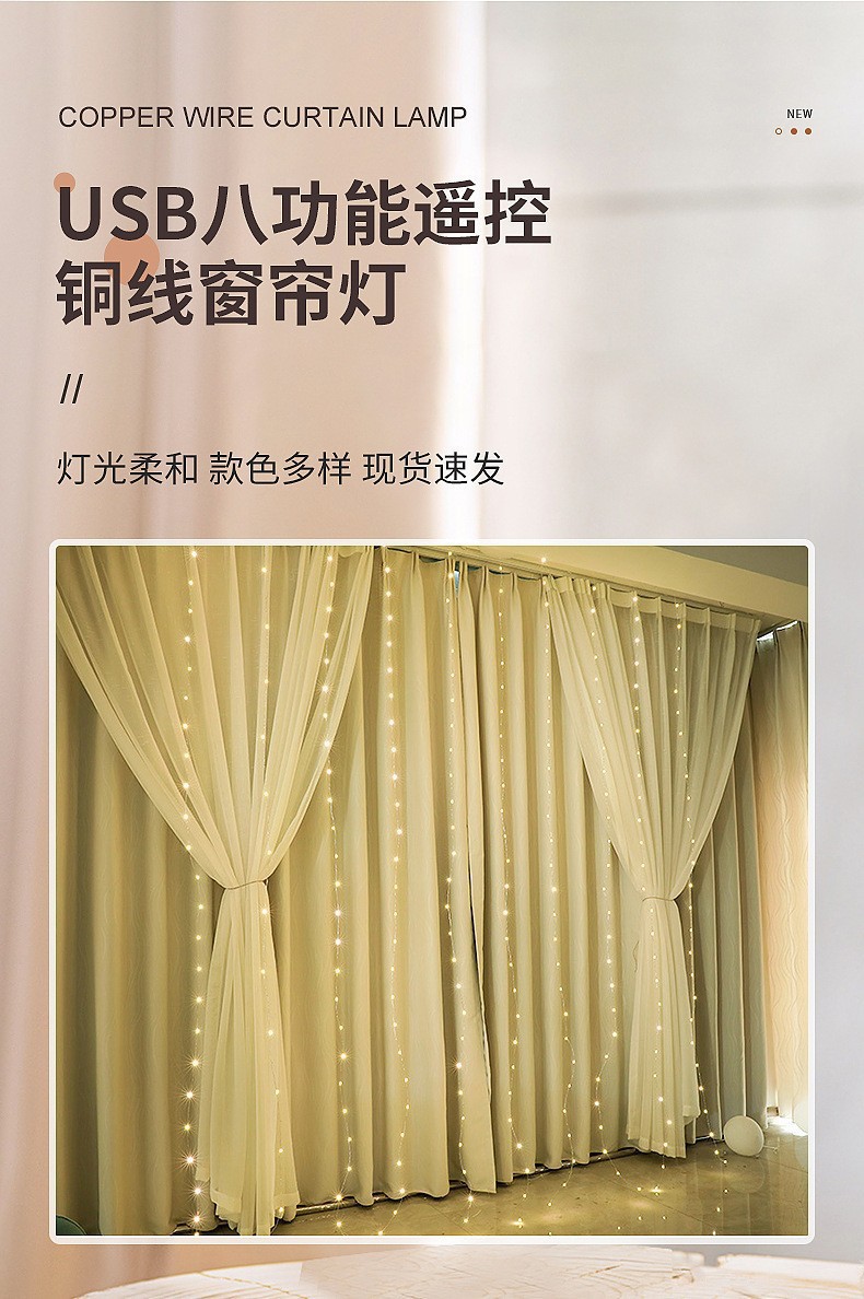 구리 와이어 커튼 라이트 스트링 룸 휴일 크리스마스 장식 조명 usb 원격 제어 8 기능 led 구리 와이어 커튼 라이트스토어 가기