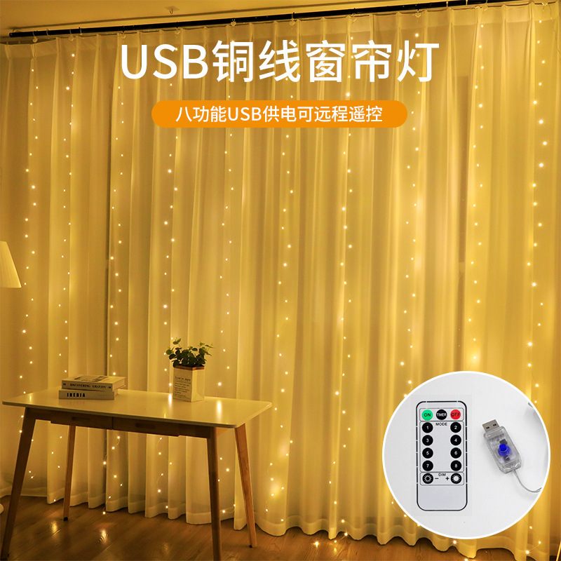 구리 와이어 커튼 라이트 스트링 룸 휴일 크리스마스 장식 조명 usb 원격 제어 8 기능 led 구리 와이어 커튼 라이트