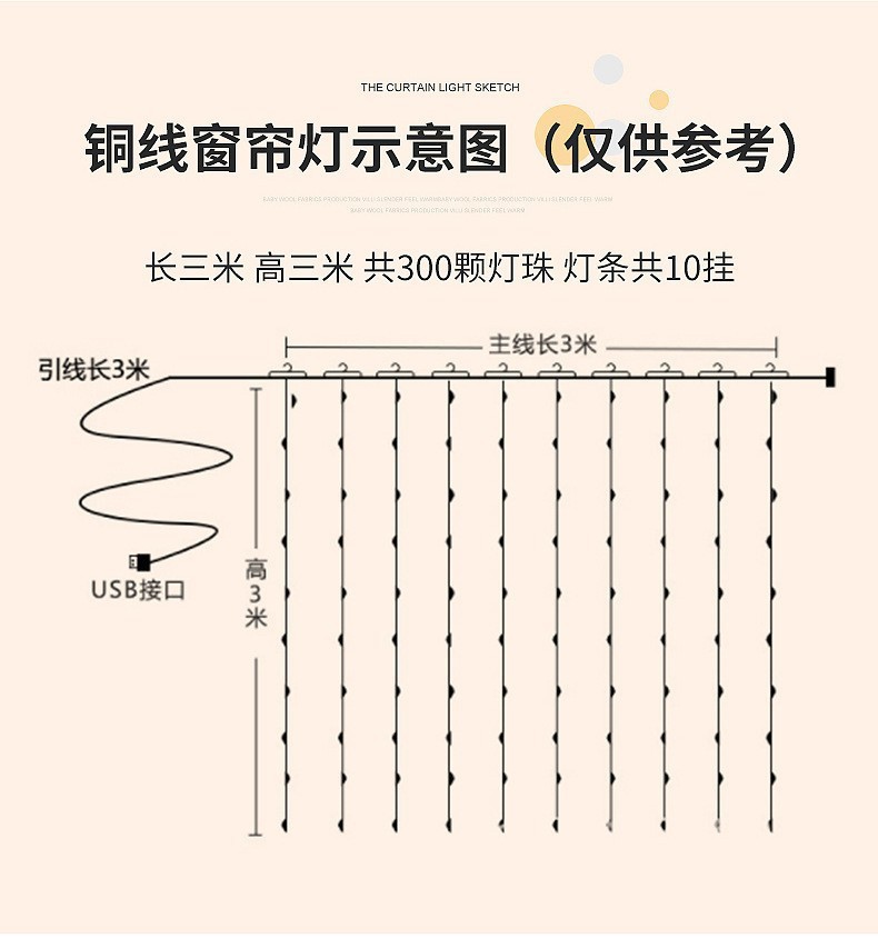 • 3*3 m 300 라이트 USB 리모컨 (후크 없음)