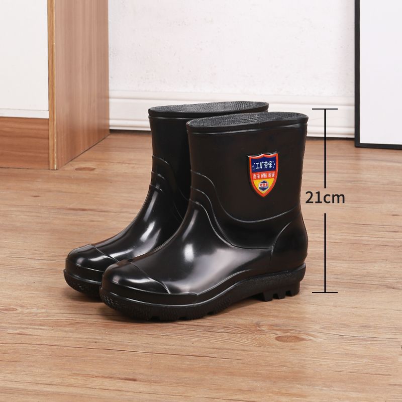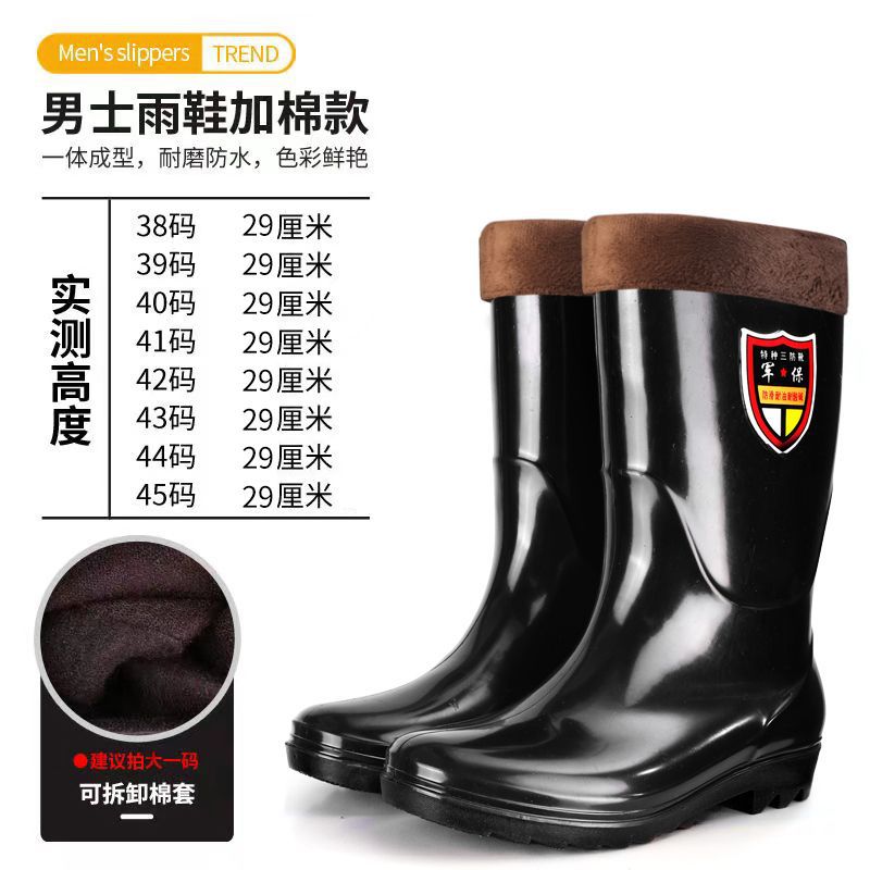 벨벳 코튼 고층 레인 부츠가있는 따뜻한 남성용 레인 부츠 짧은 미끄럼 방지 물 신발 내마모성 방수 고무 신발 두꺼운 쇠고기 힘줄 신발