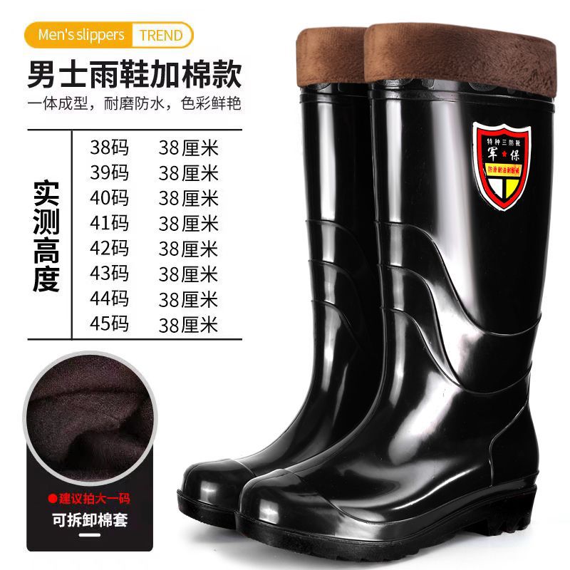 벨벳 코튼 고층 레인 부츠가있는 따뜻한 남성용 레인 부츠 짧은 미끄럼 방지 물 신발 내마모성 방수 고무 신발 두꺼운 쇠고기 힘줄 신발스토어 가기