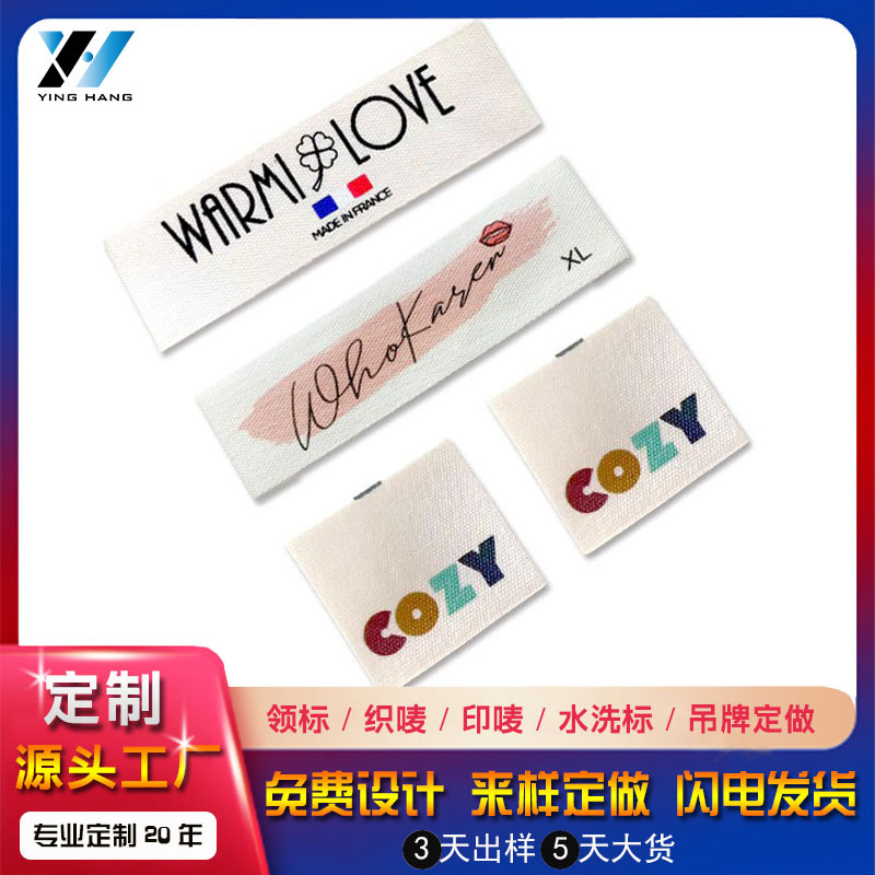 옷 면 벨트 워시 라벨 실크 스크린 칼라 라벨 인쇄 천 라벨 검정 무광택 면 어린이 만화 로고 상표스토어 가기