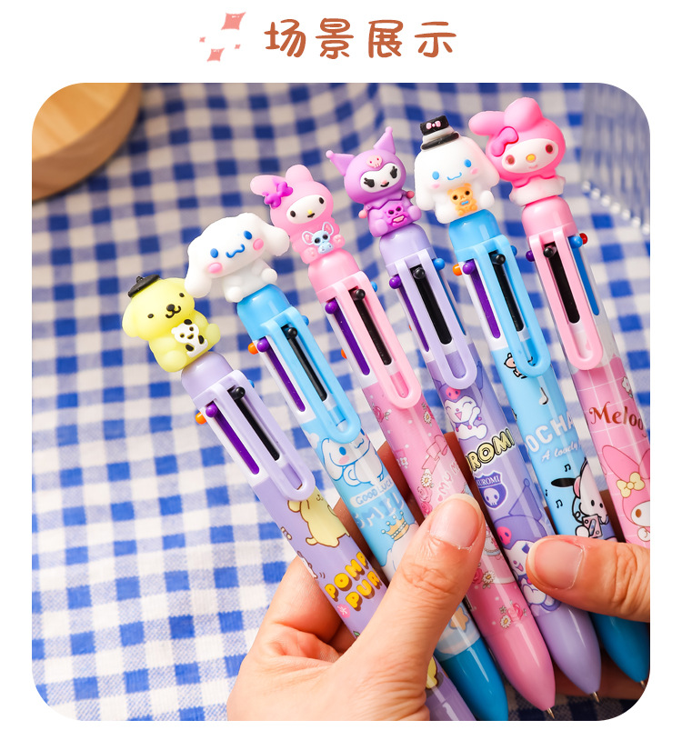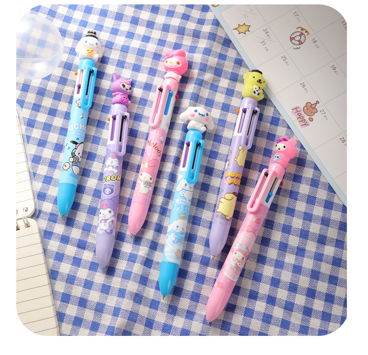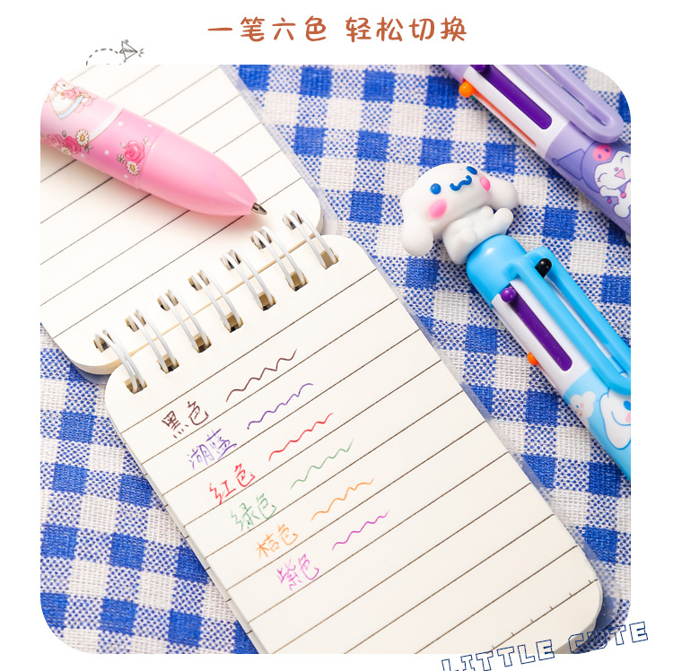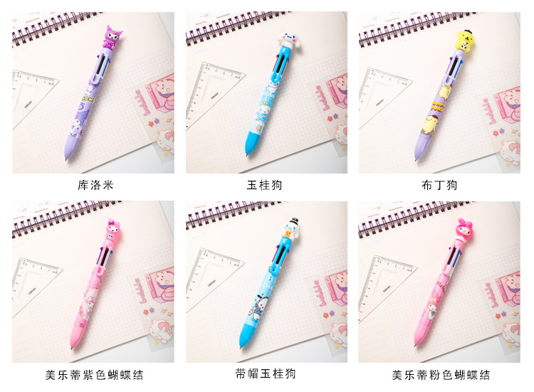 만화 산리오 볼펜 Kulomi Yugui 개 6 색 펜 귀여운 프레스 멀티 컬러 핸드 계정 펜 학생 문구스토어 가기