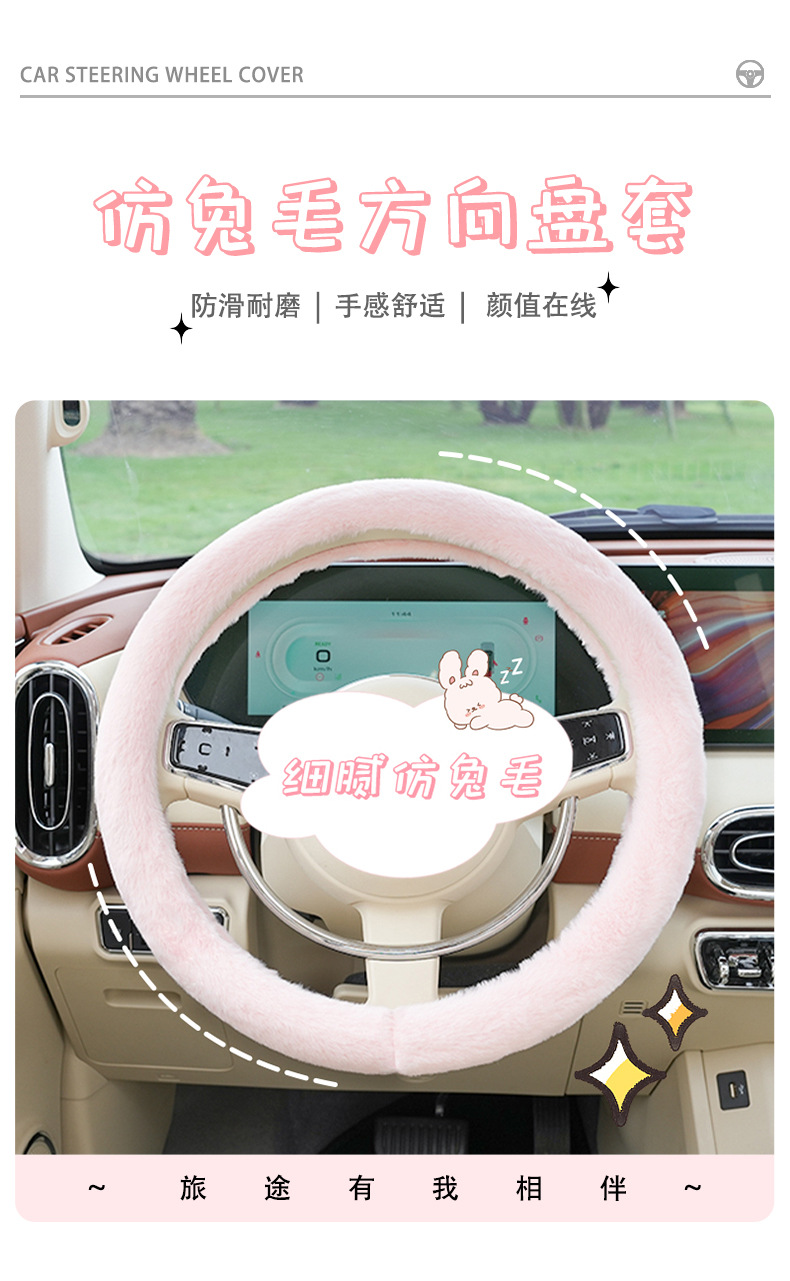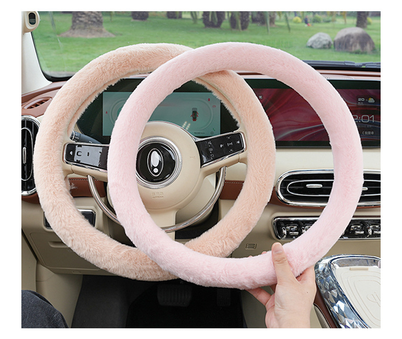 모조 토끼 모피 자동차 핸들 커버 플러시 따뜻한 미끄럼 방지 자동차 핸들 커버 겨울 자동차 인테리어 용품스토어 가기