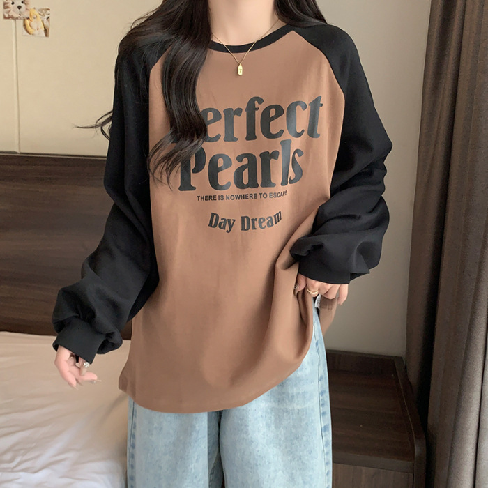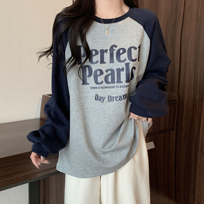 봄과 가을 독일 벨벳 따뜻한 대비 색상 긴팔 스웨터 여성용 틈새 디자인 감각 느슨한 슬리밍 티셔츠베이스 셔츠 탑스토어 가기