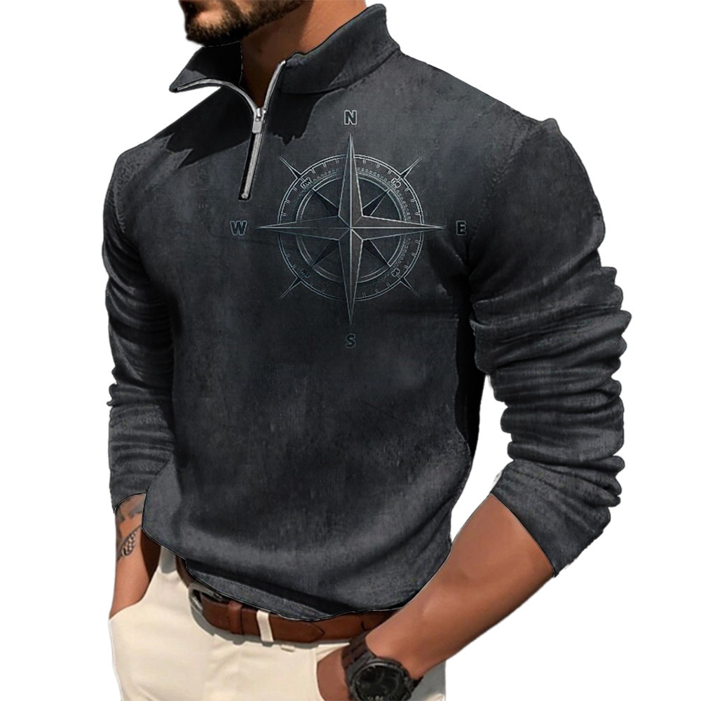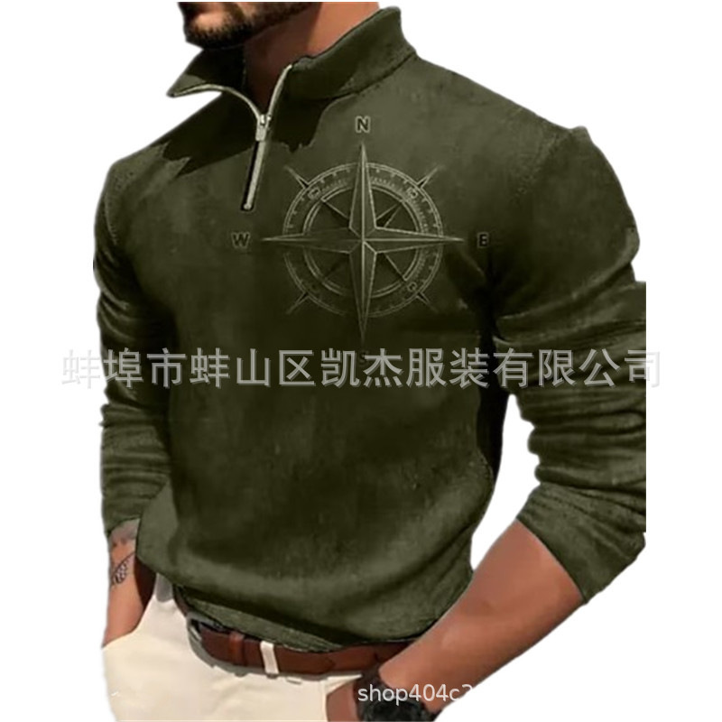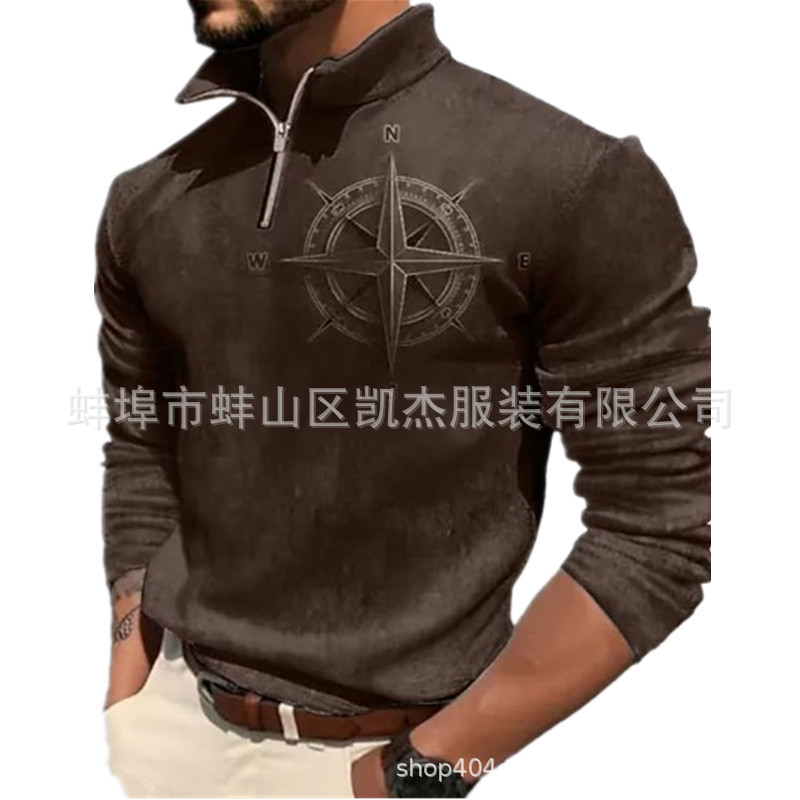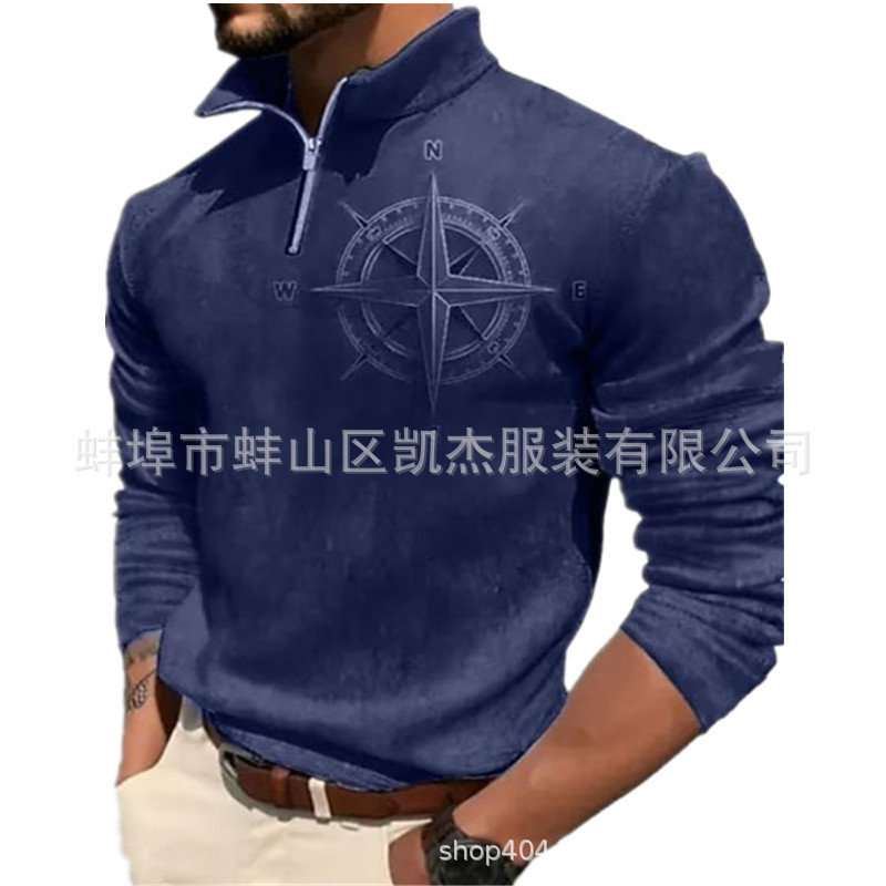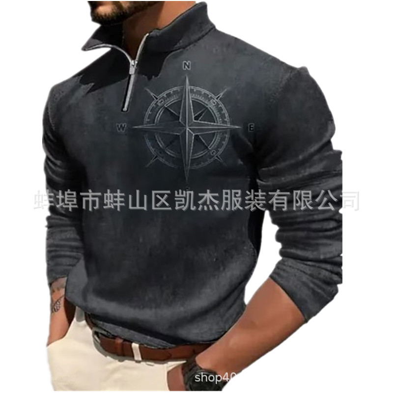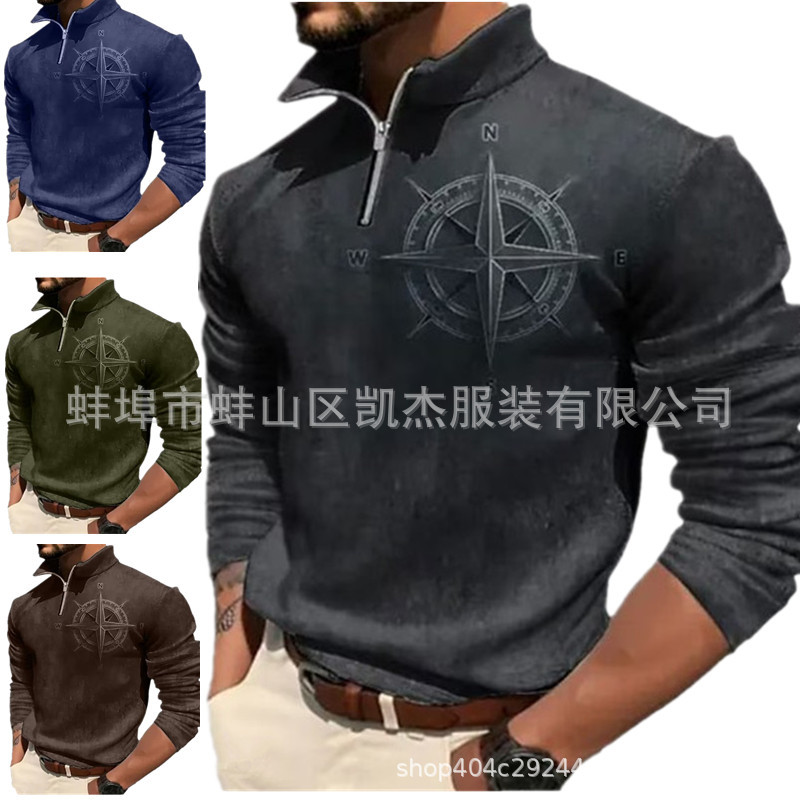 2023 독립 역 크로스 보더 남자의 3d 복고풍 인쇄 긴 소매 지퍼 스웨터 웨스턴 데님 캐주얼 스웨터