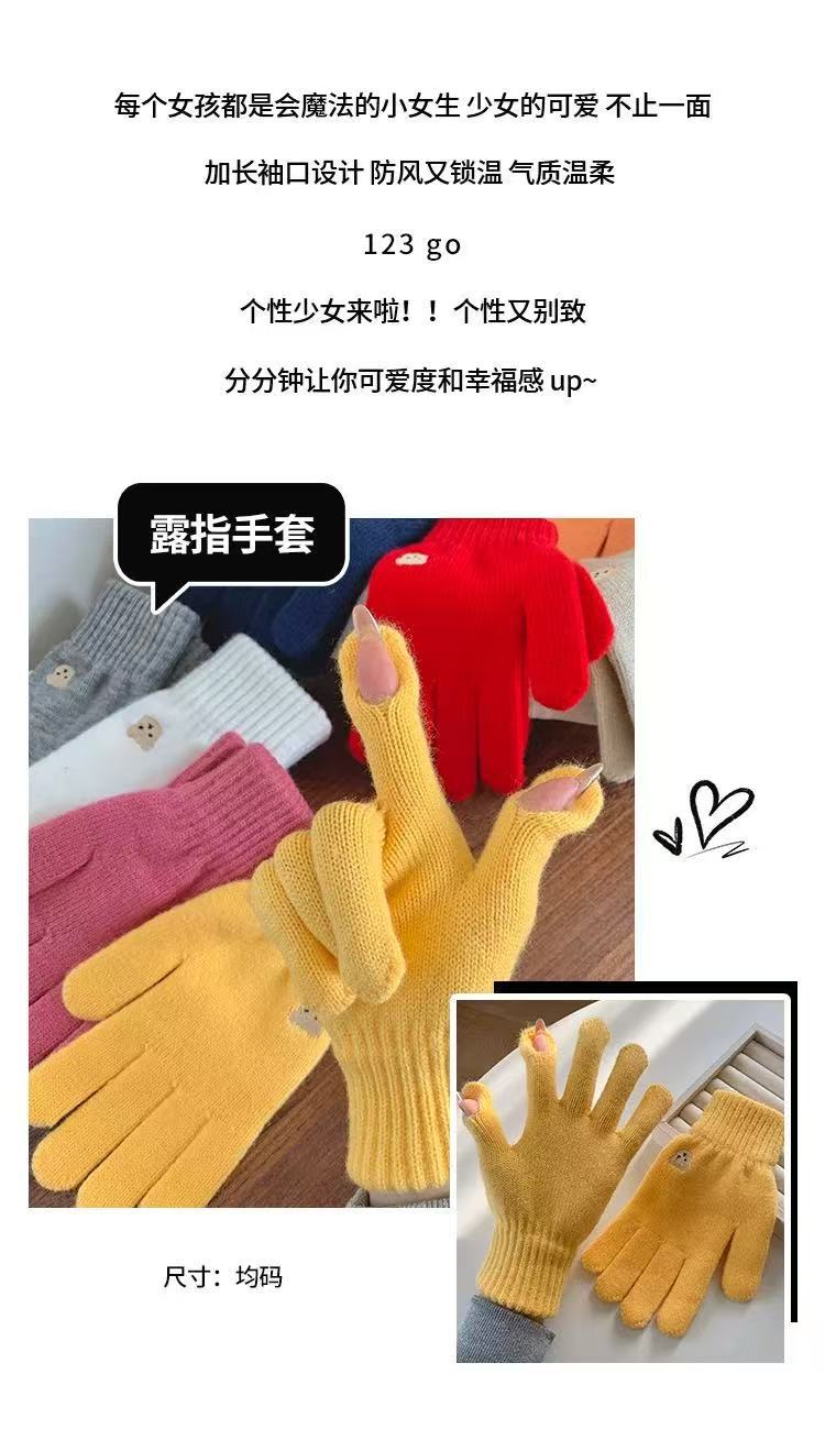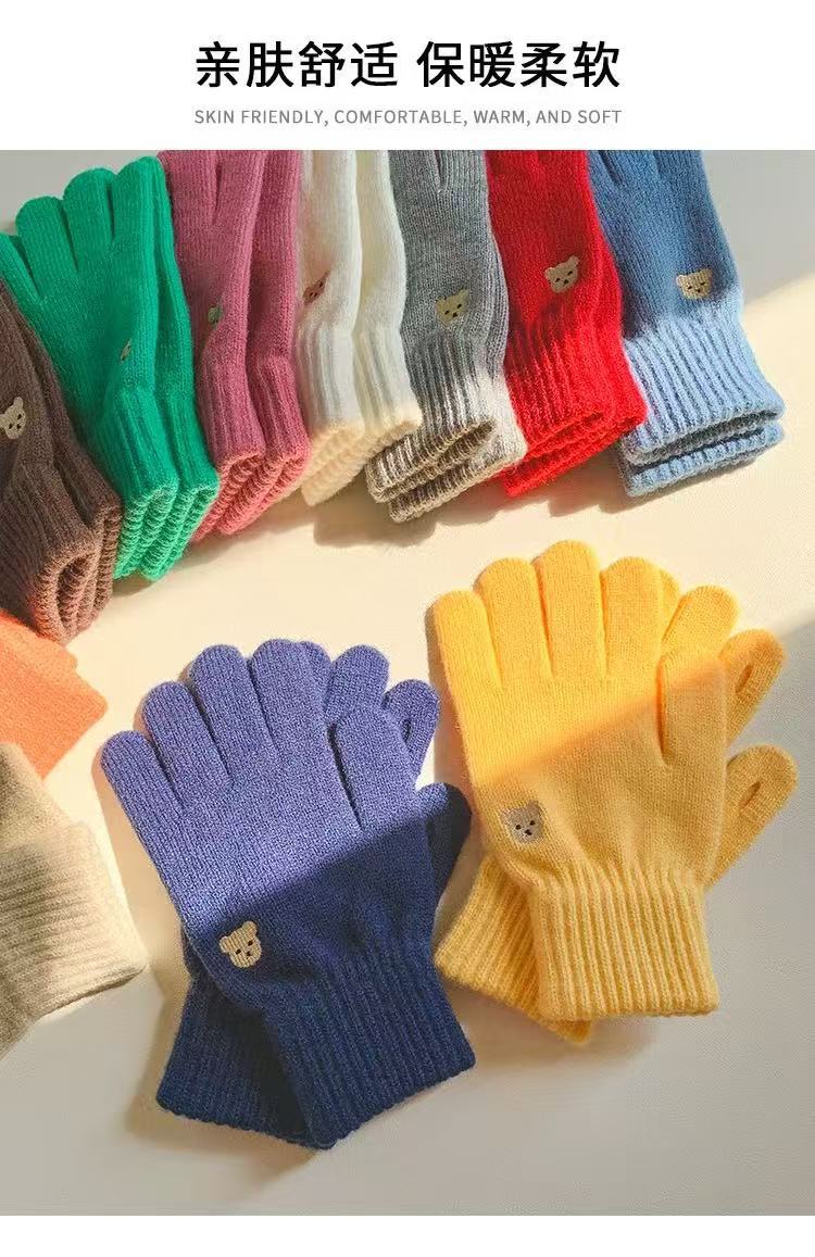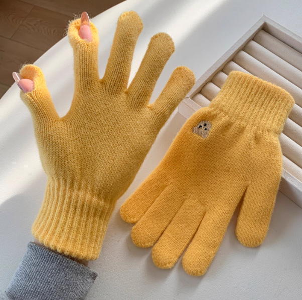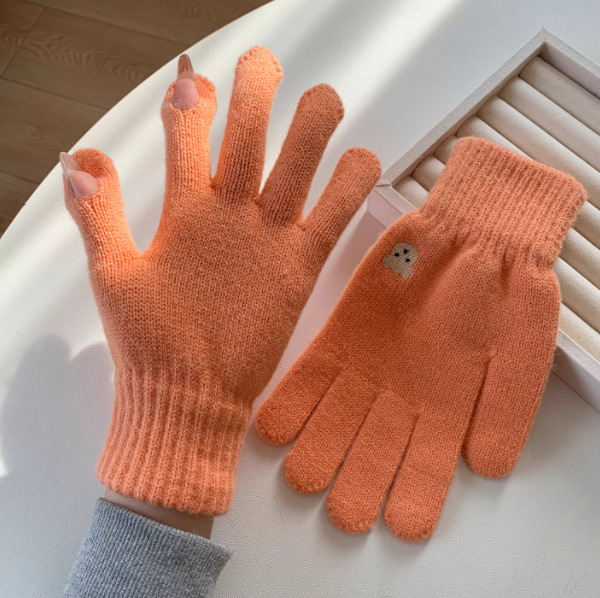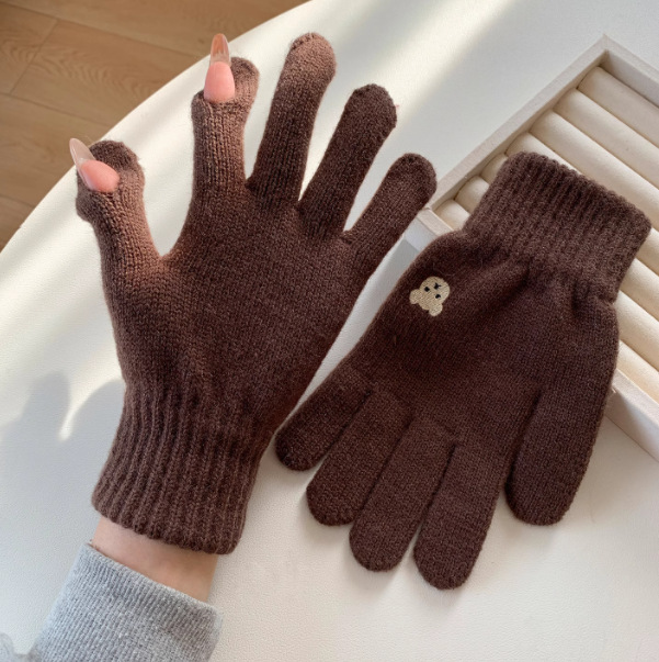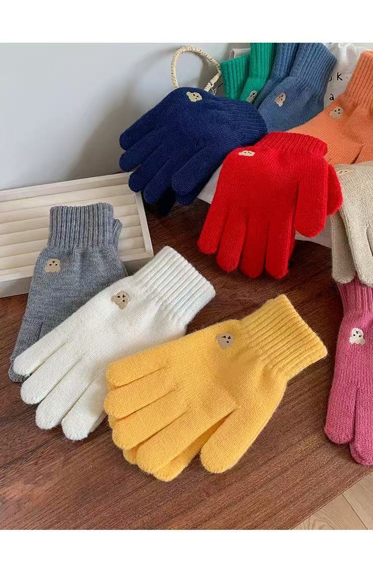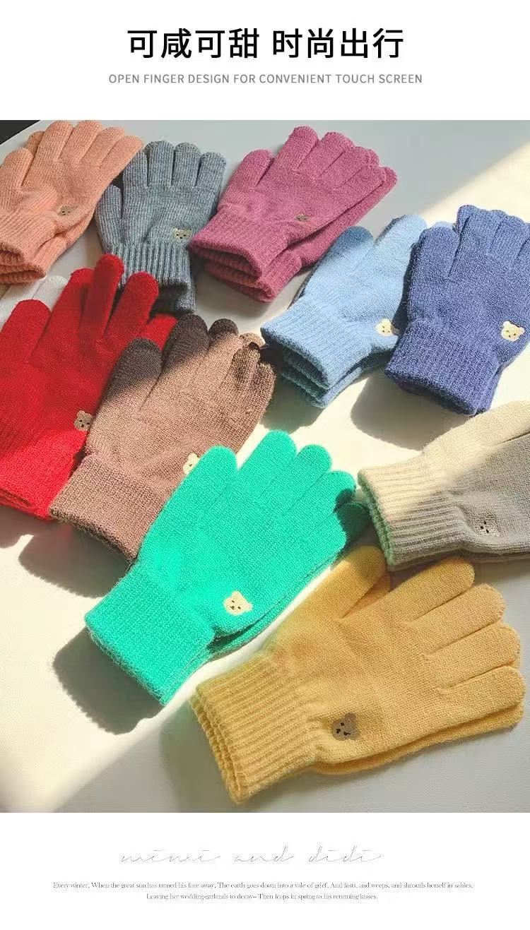 양모 장갑 여자의 가을과 겨울 한국 귀여운 곰 자수 니트 터치 스크린 학생 따뜻한 사이클링 장갑 방풍